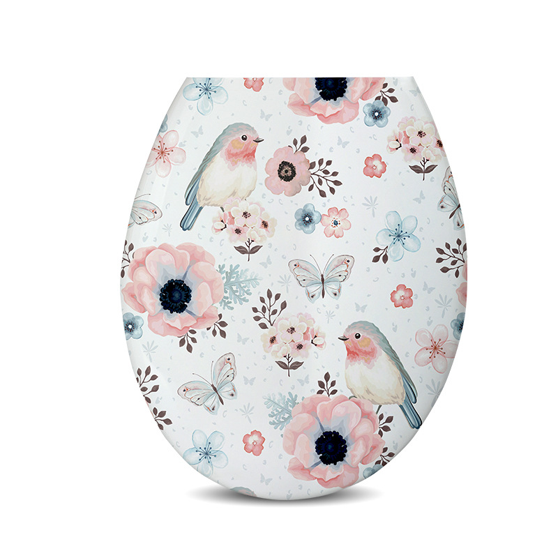 Thickened printed PP universal U-shaped plastic toilet seat cover, European-style toilet seat ring, toilet board cover, toilet bowl accessories