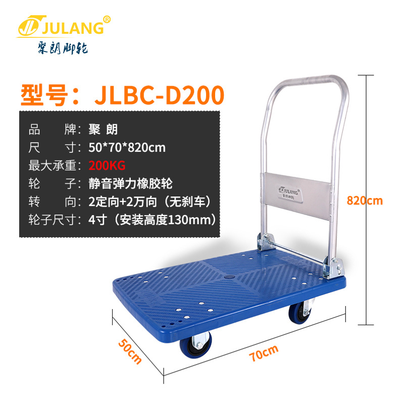 Thickened silent flatbed cart, household folding trolley, handling cart, handcart, convenient cargo pulling, hand-pulled cart, small trailer