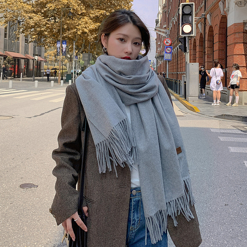 Thickened solid-color faux cashmere women's winter red year-end party Chinese red scarf printed and embroidered for warmth wholesale