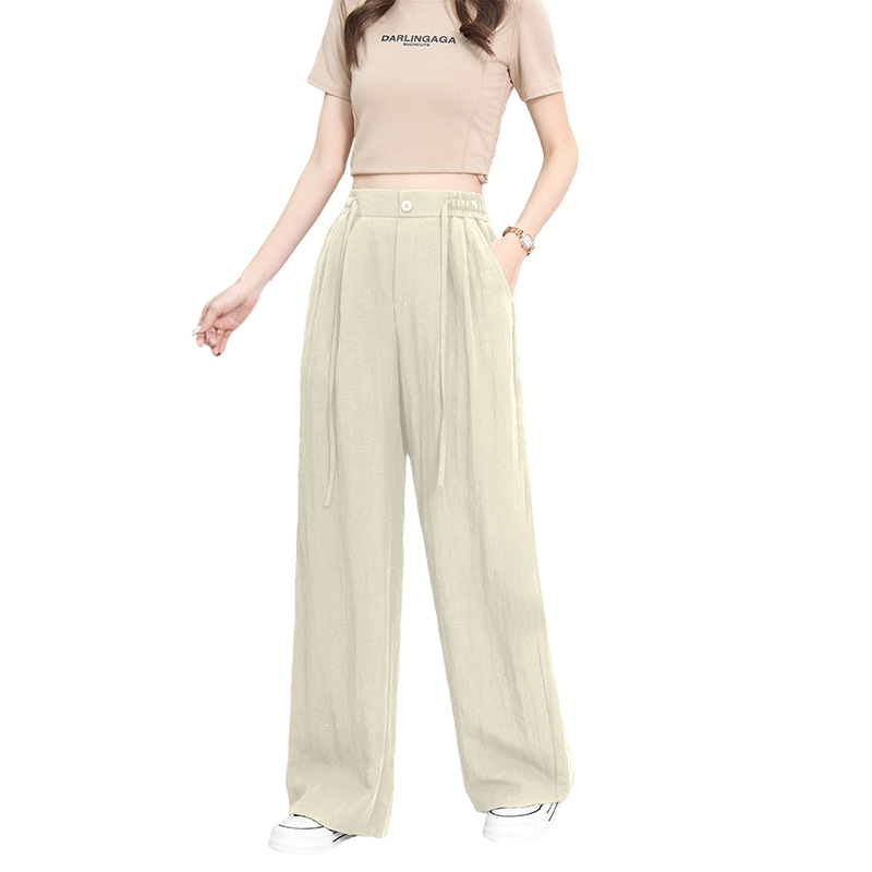 Thin breathable Tencel linen casual pants for women 2025 new summer, thin, high-end, drape wide-leg pants for women