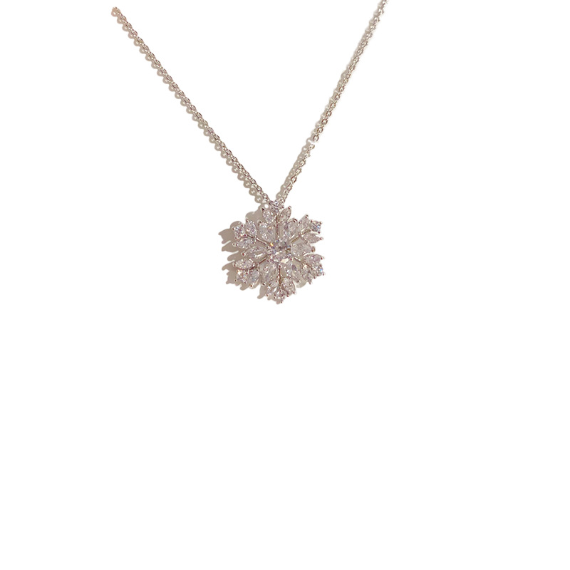 This autumn and winter collection features a fashionable, elegant, simple and exquisite zirconium snowflake necklace, high-end stud earrings, and a dazzling, niche design