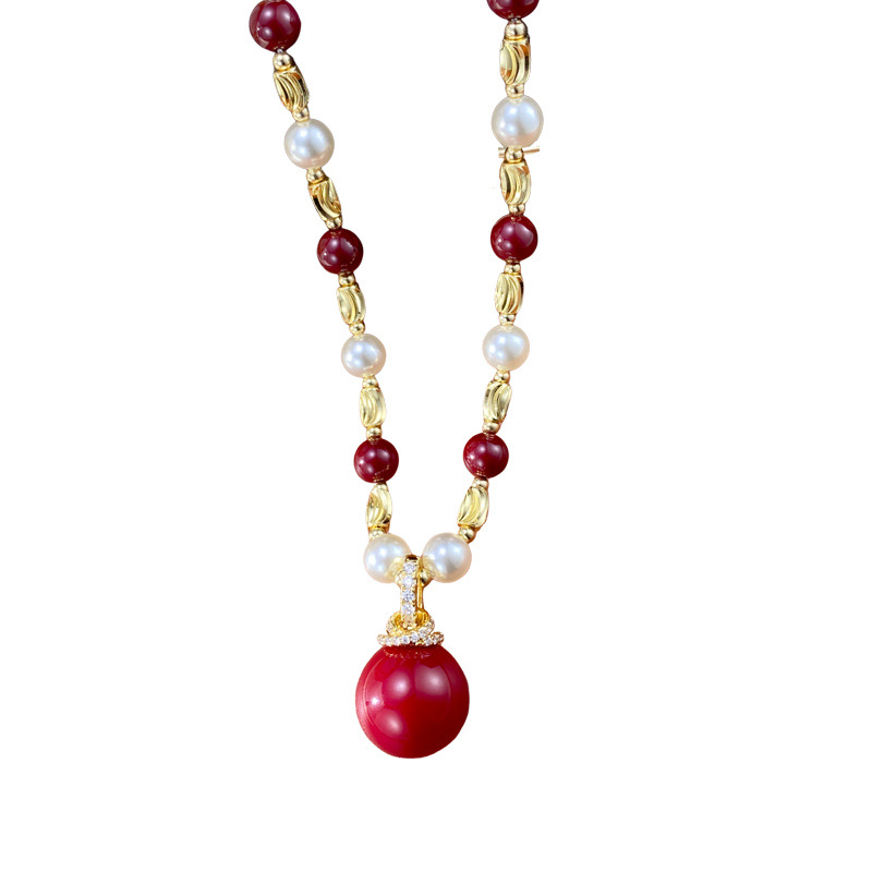 This autumn and winter new style of fashionable and retro beaded red pearl pendant necklace is unique, light luxury, gentle and versatile. It's a collarbone chain for women