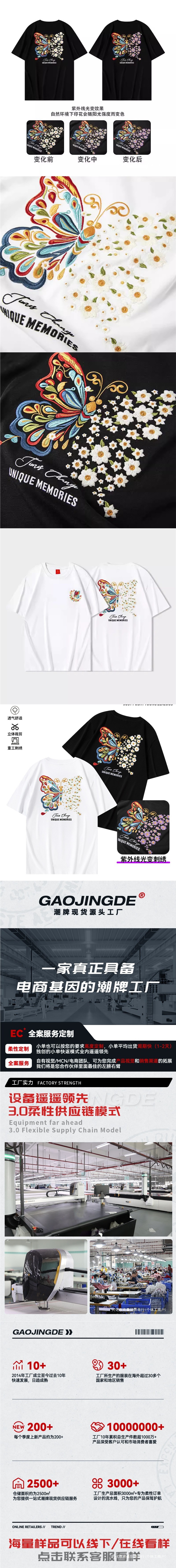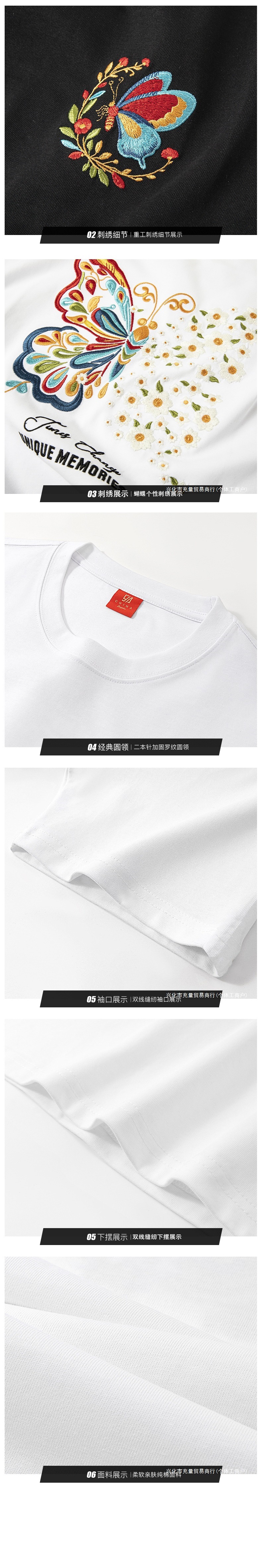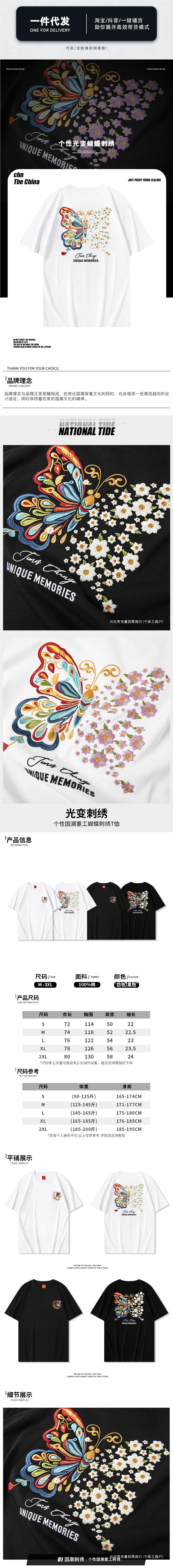 This cross-border men's Chinese-style short-sleeved T-shirt features butterfly light-changing embroidery with a Chinese style, a round neck, loose and heavy semi-black design