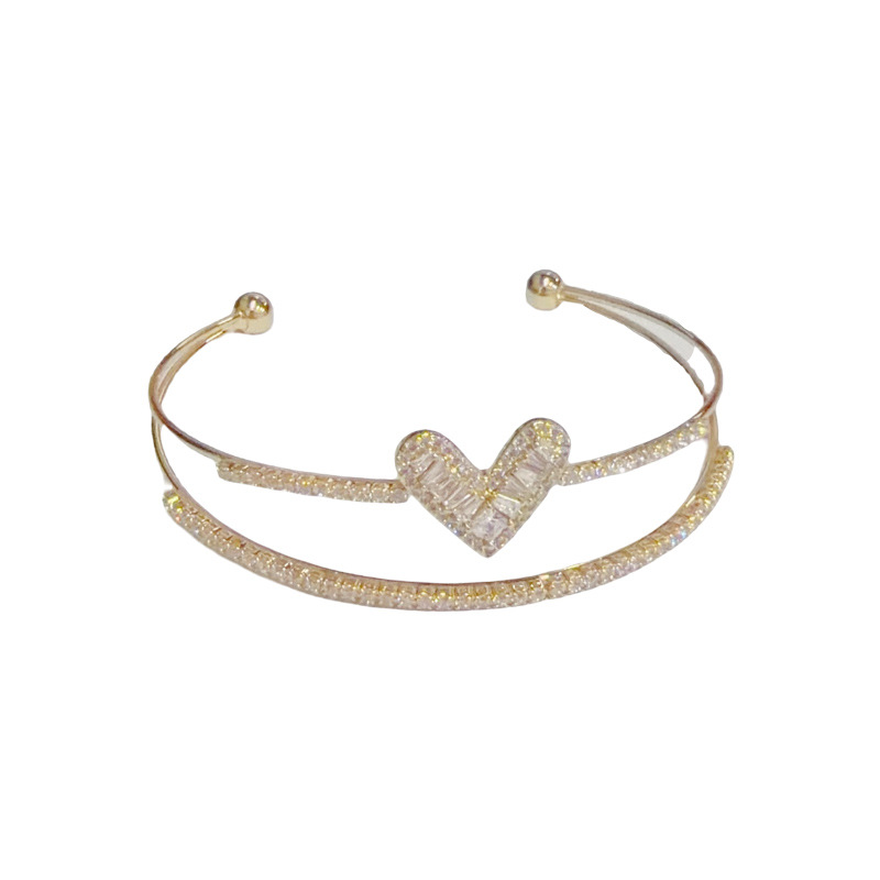 This exquisite, fashionable and light luxury zircon heart-shaped double-layer open bracelet from Japan and South Korea is unique, versatile, and exudes a high-end and dazzling charm. It's a perfect accessory for women