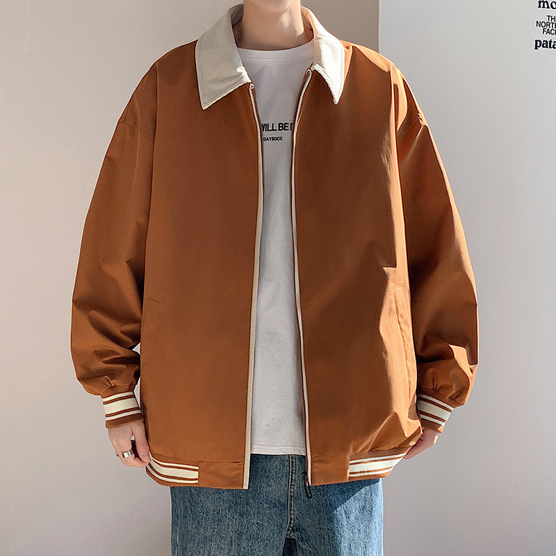 This is a loose and stylish Korean style spring and autumn jacket with a lapel. It's a trendy and versatile casual coat for teenagers