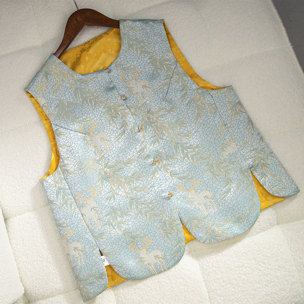 This is a new Chinese-style waistcoat for women in spring and autumn, featuring a retro, high-end, and simple Chinese-style buttoned embroidery jacquard top