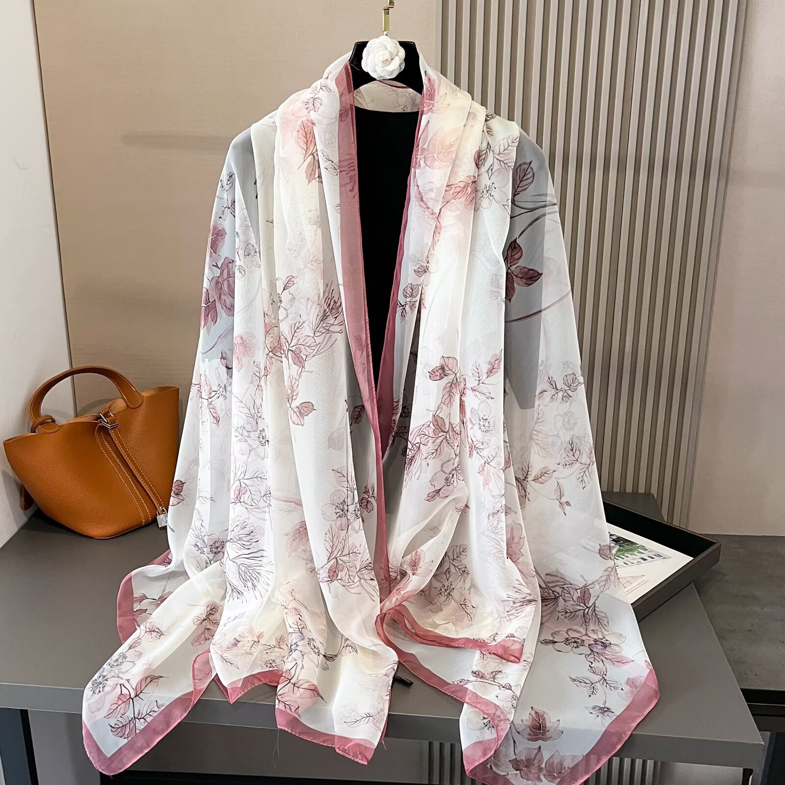 | New summer versatile silk scarf, high-end long silk scarf, travel sun protection imitation silk printed scarf, Hangzhou silk |
