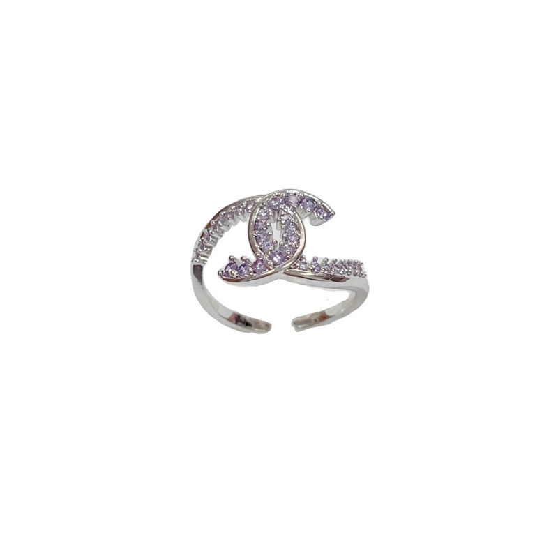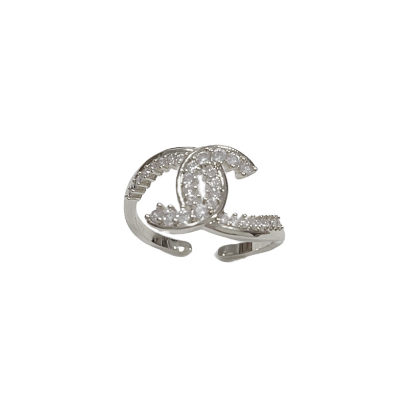 This is a new summer fashion Chanel style full-diamond letter open-mouth ring with a unique, light luxury, versatile and super shiny design