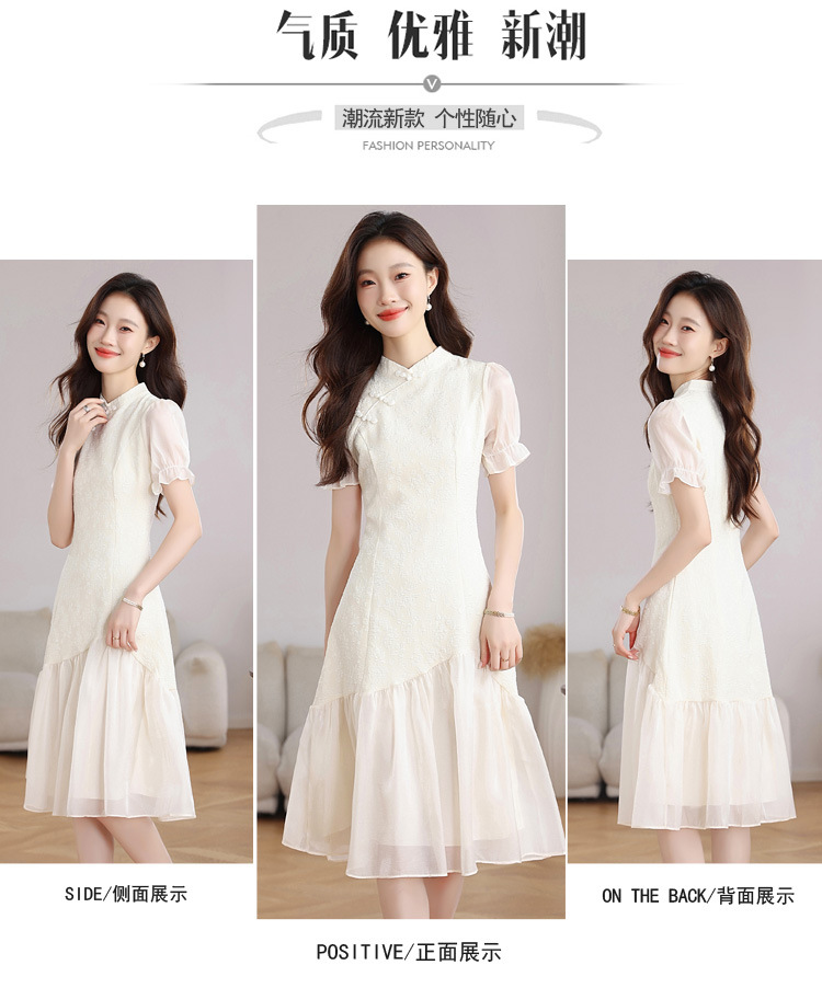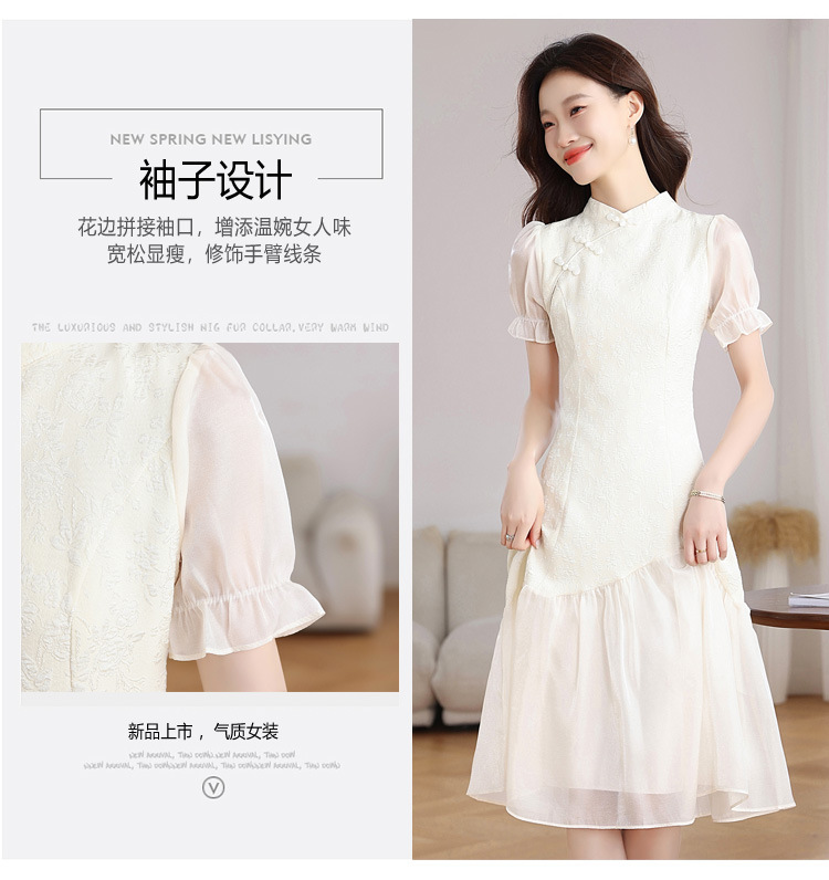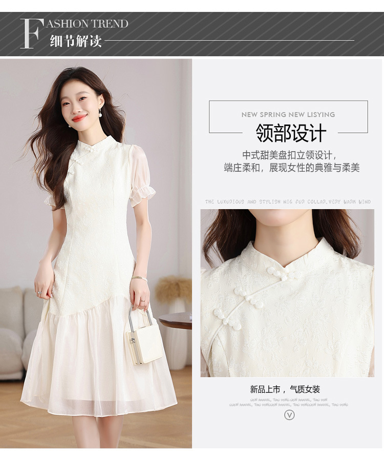 This is a real photo of a new Chinese-style cheongsam in summer women's clothing, an improved retro chanel-style dress with a patchwork design that exudes a sense of elegance and slimming charm