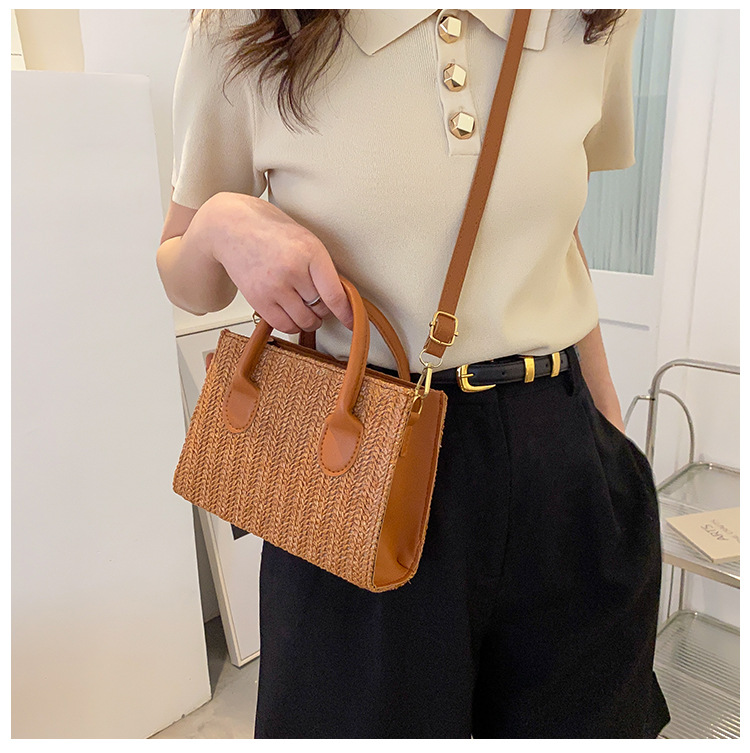 This is a trendy solid-color pp woven, elegant and retro little square girl's 2025 new style bag. It's a stylish and trendy girl's single-shoulder crossbody bag and a national trend bag
