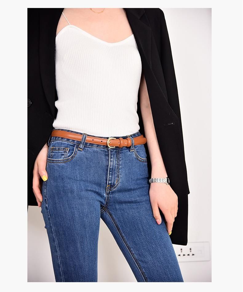 This lady's leather belt is simple and elegant, versatile and fashionable in summer. It features an ins style with a thin waist belt to decorate the dress pants and jeans, making it a trendy choice for women