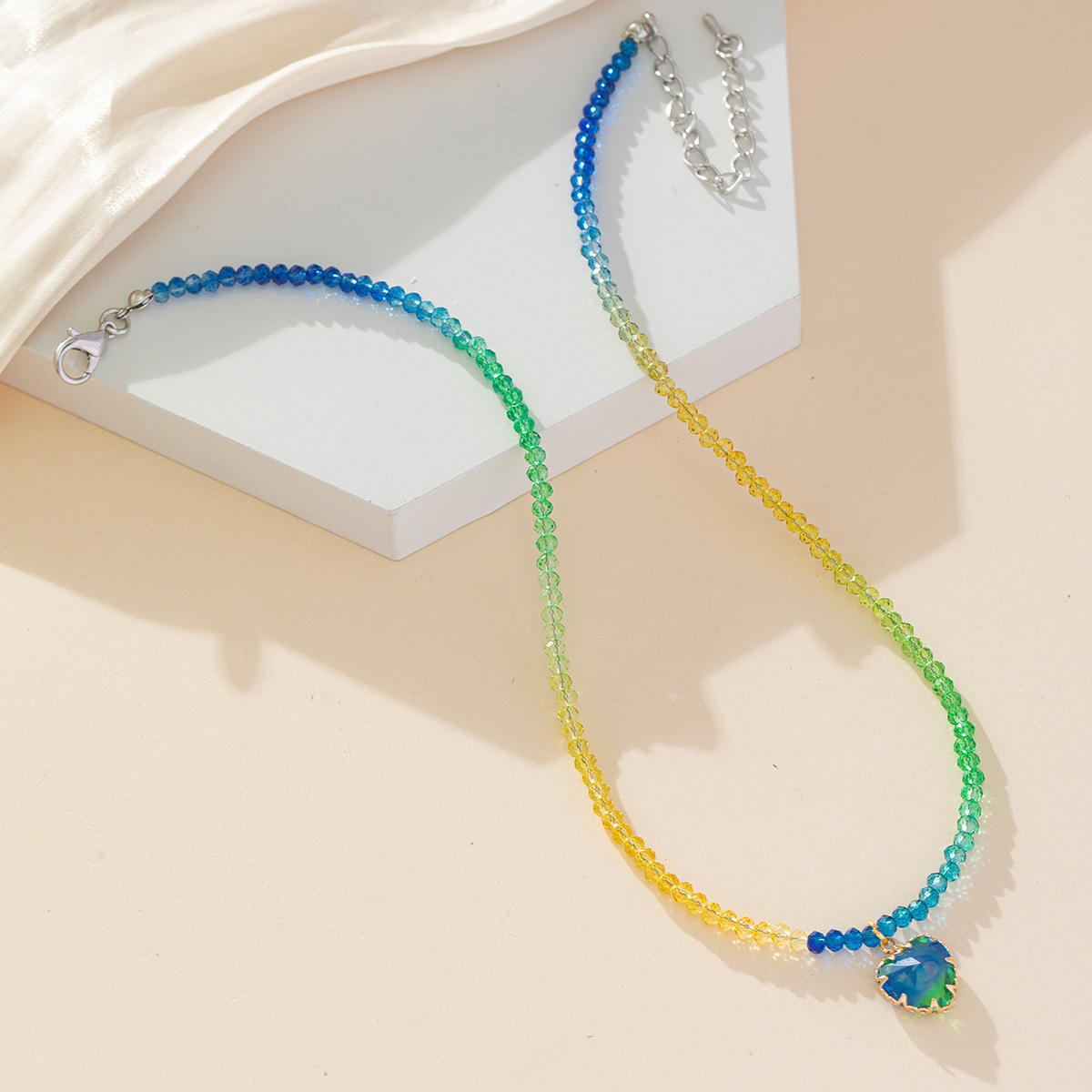 This light luxury and high-end colored crystal zircon beaded necklace is sweet and fresh for women. Wholesale collarbone chain with a versatile design