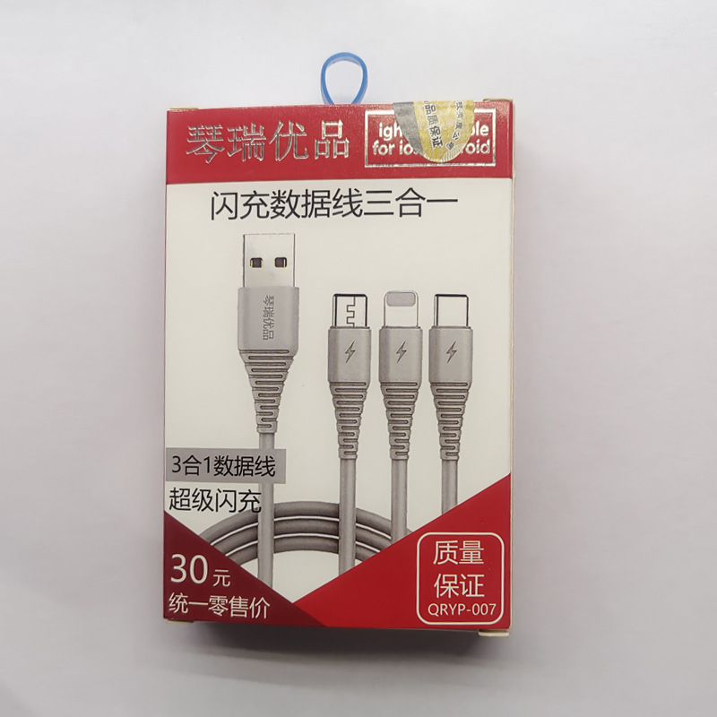 This multi-functional fast charging data cable is suitable for flash charging of Pingguo, Huawei and Android phones