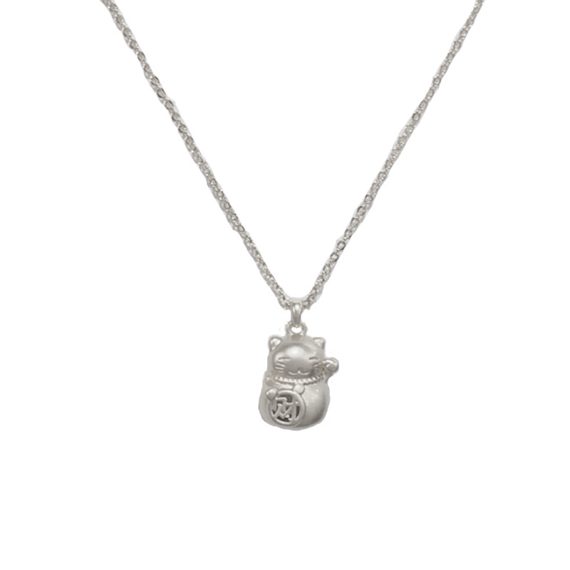 This niche, fashionable and simple design matte gold metal Maneki Neko pendant necklace exudes a light luxury and is a versatile necklace for daily use