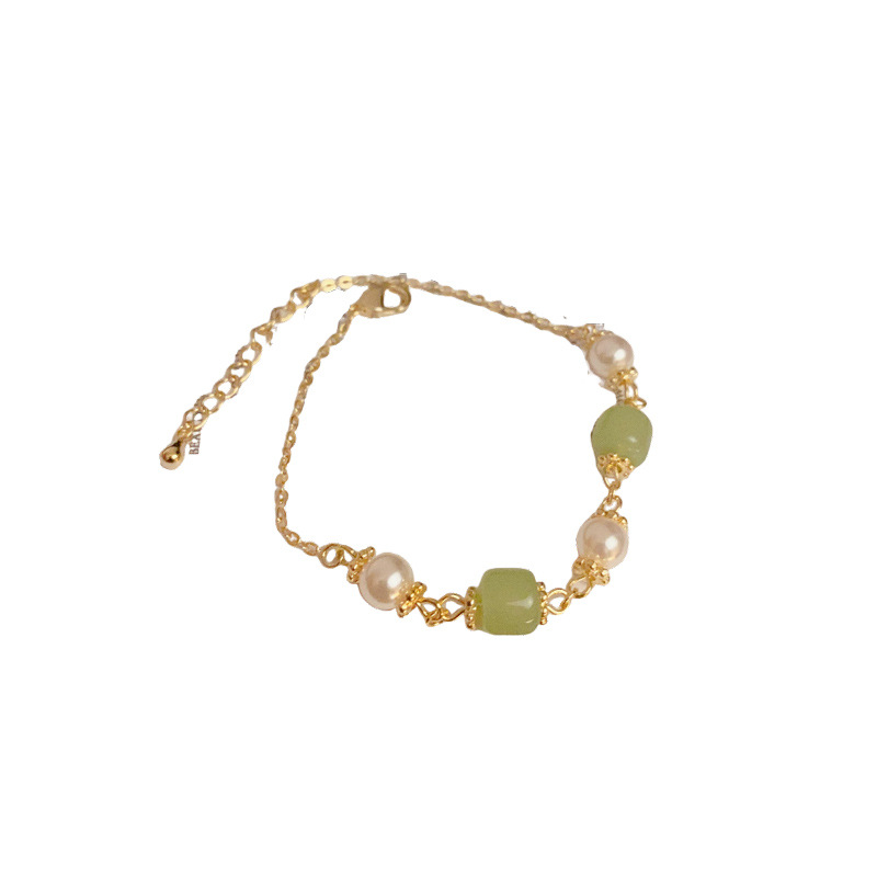 This niche, fashionable, versatile, and stylish green pearl chain bracelet exudes a light luxury and high-end charm