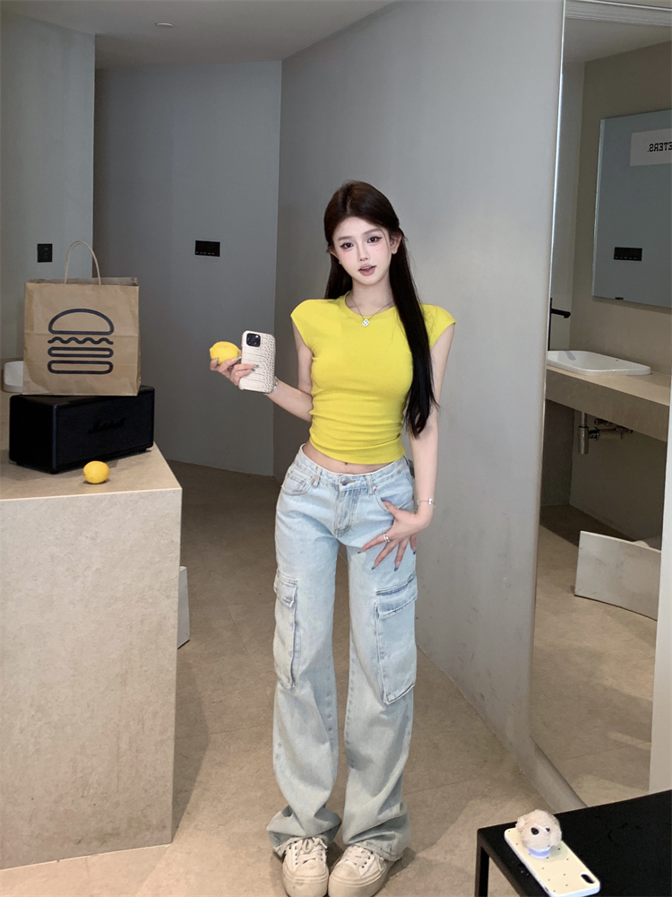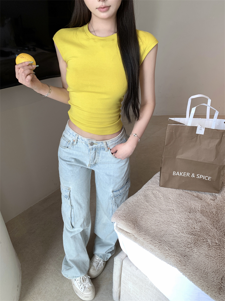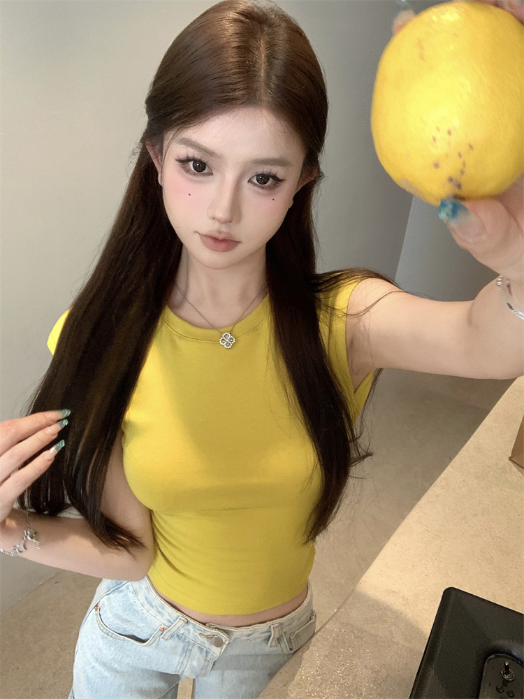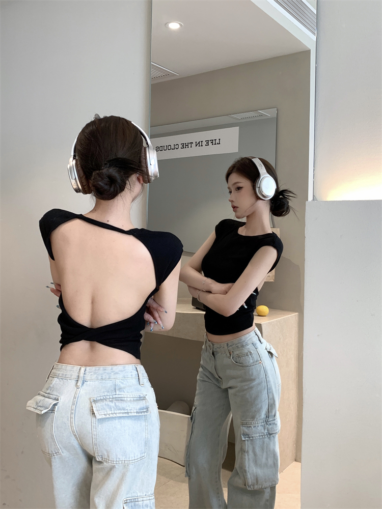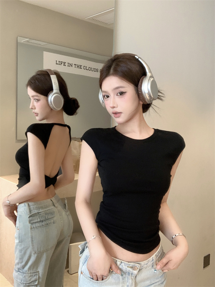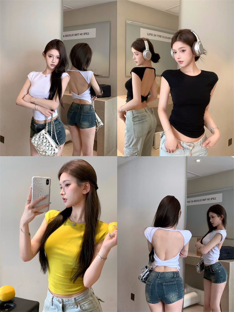 This summer design style features a cross-knotted front-shoulder short-sleeved T-shirt. It's a sexy, cut-out, backless top for women