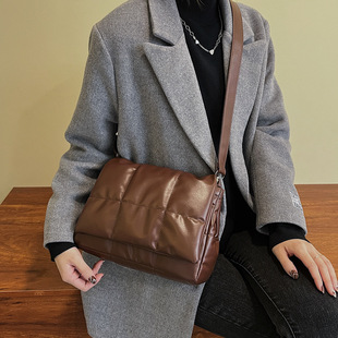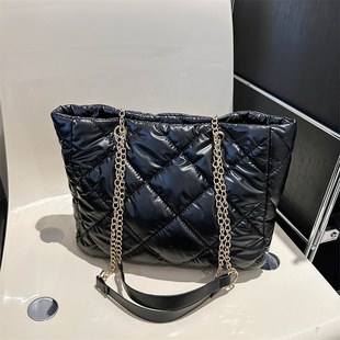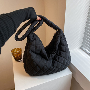 | Down jacket bag, women's bag 2023 New style simple solid color tote bag, autumn and winter diamond-shaped large-capacity casual single-shoulder bag |
