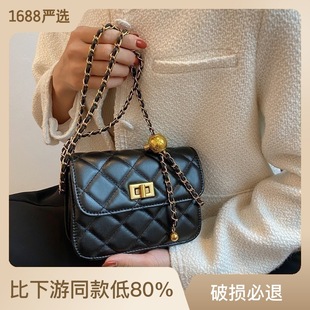 | 2022 Spring/Summer New women's bag: Versatile diamond-shaped small golden ball chain bag, versatile solid color small square bag, single-shoulder crossbody bag |