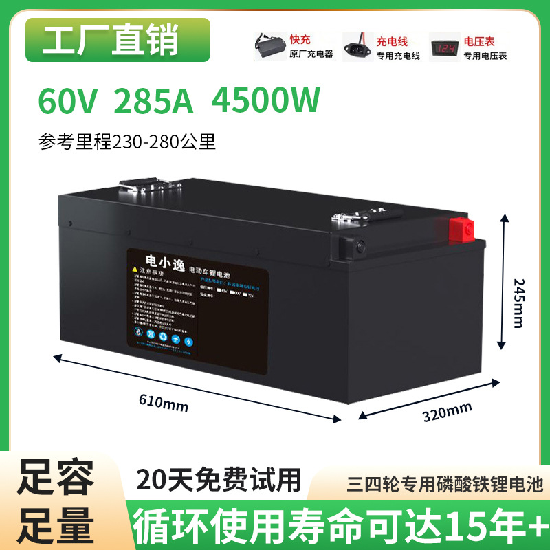 The reference mileage for 60V285A lithium iron phosphate is 250 to 280 kilometers