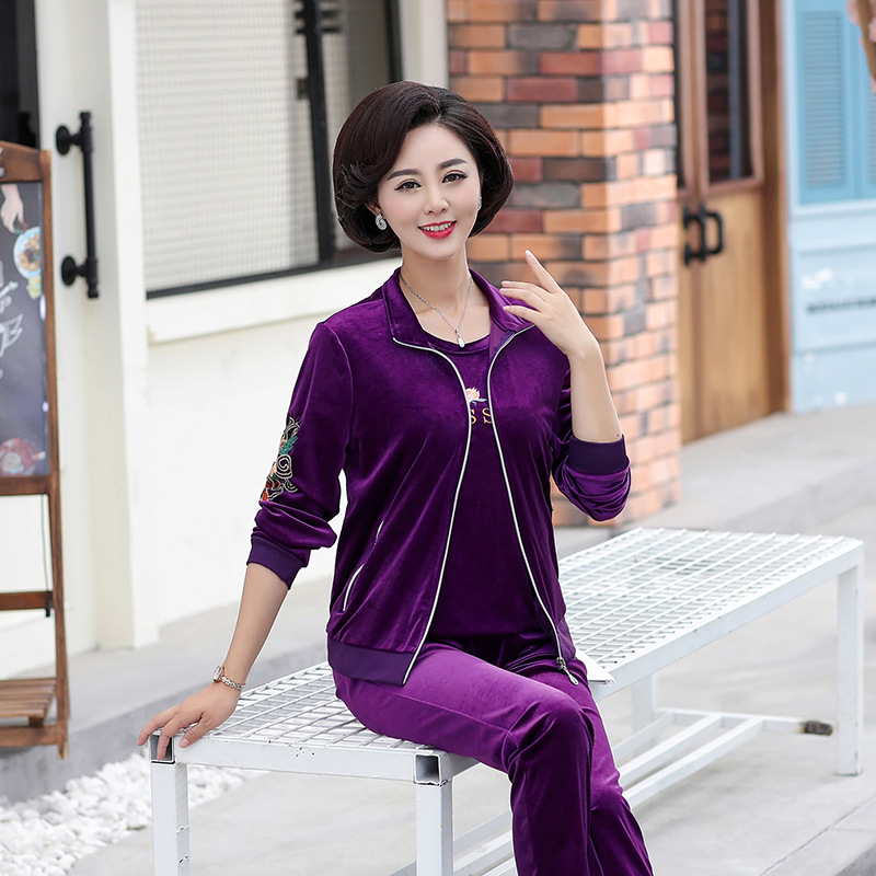 Three-piece set for middle-aged and elderly women's clothing in Spring and autumn 2019: Mom's wear, velvet suit, casual and fashionable women's sportswear