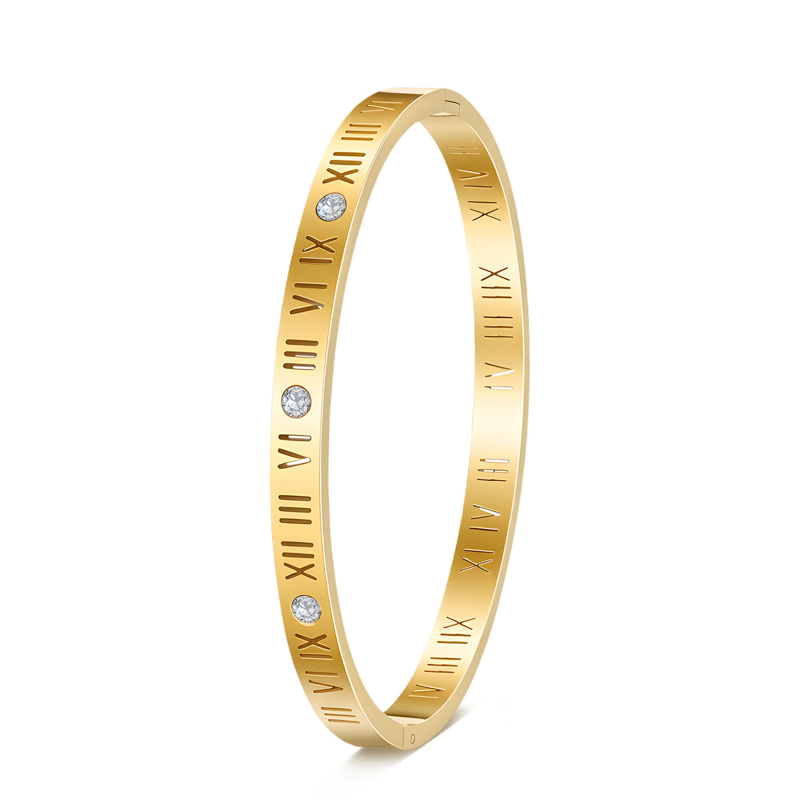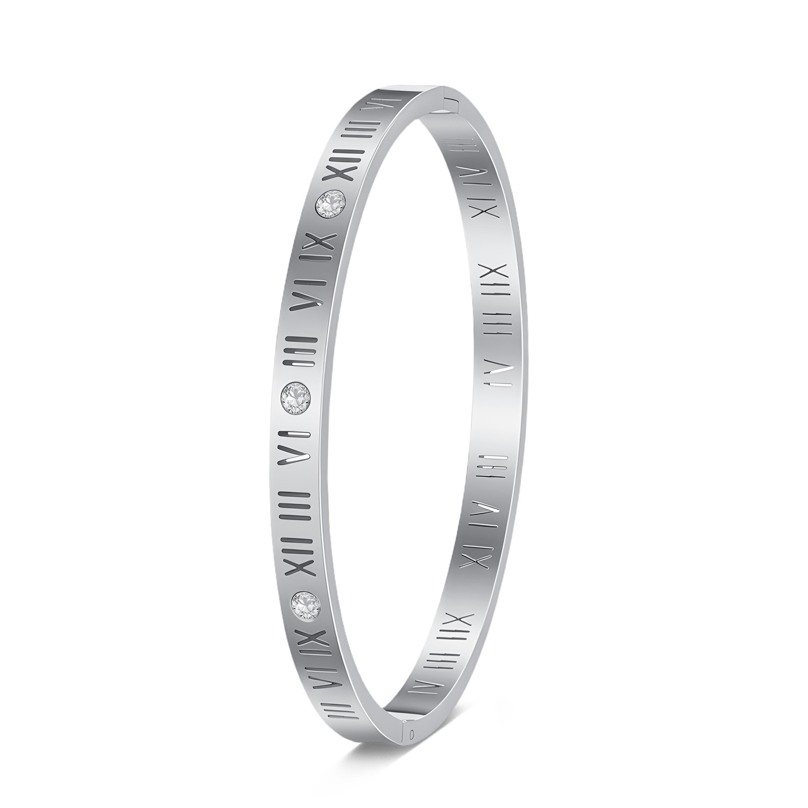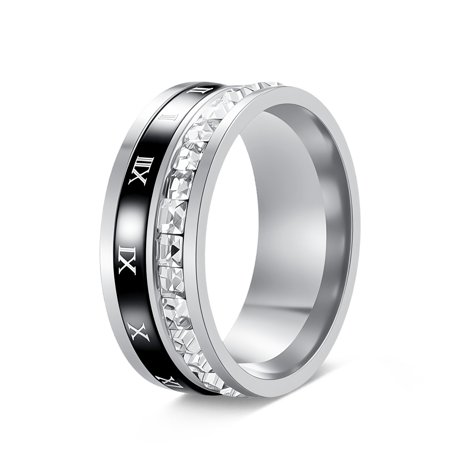 Three pieces of fashionable stainless steel rings, bracelets and necklaces with Roman numerals for cross-border European and American women