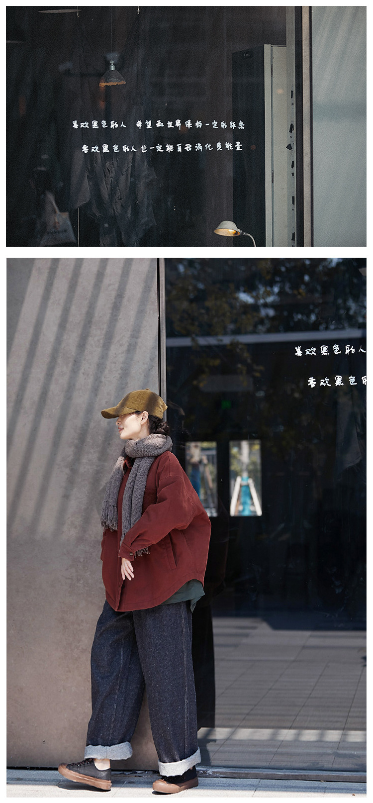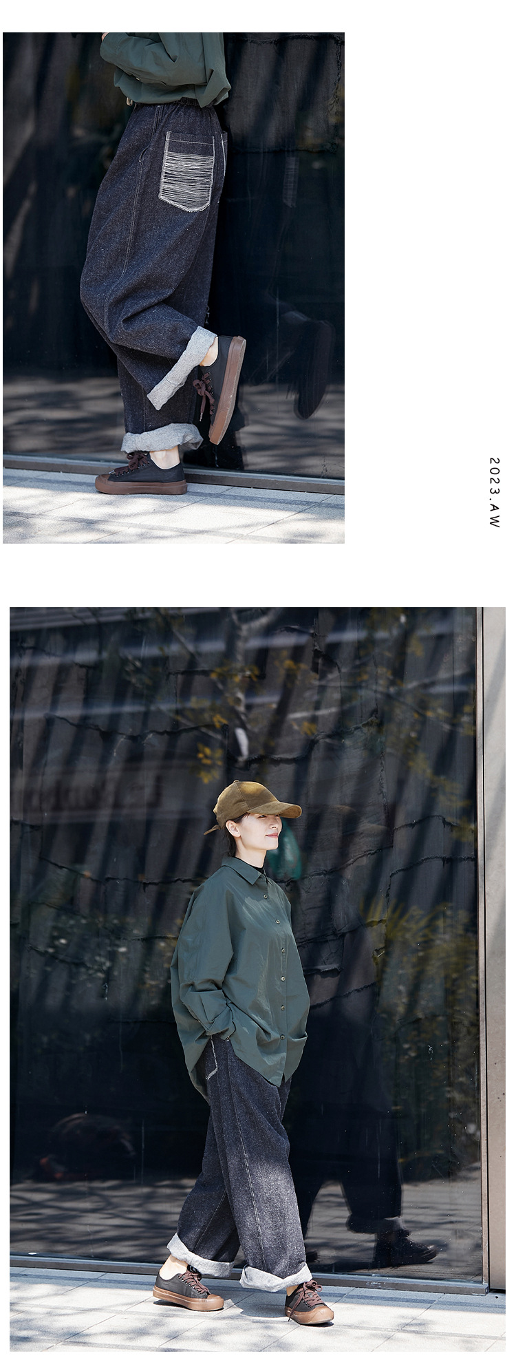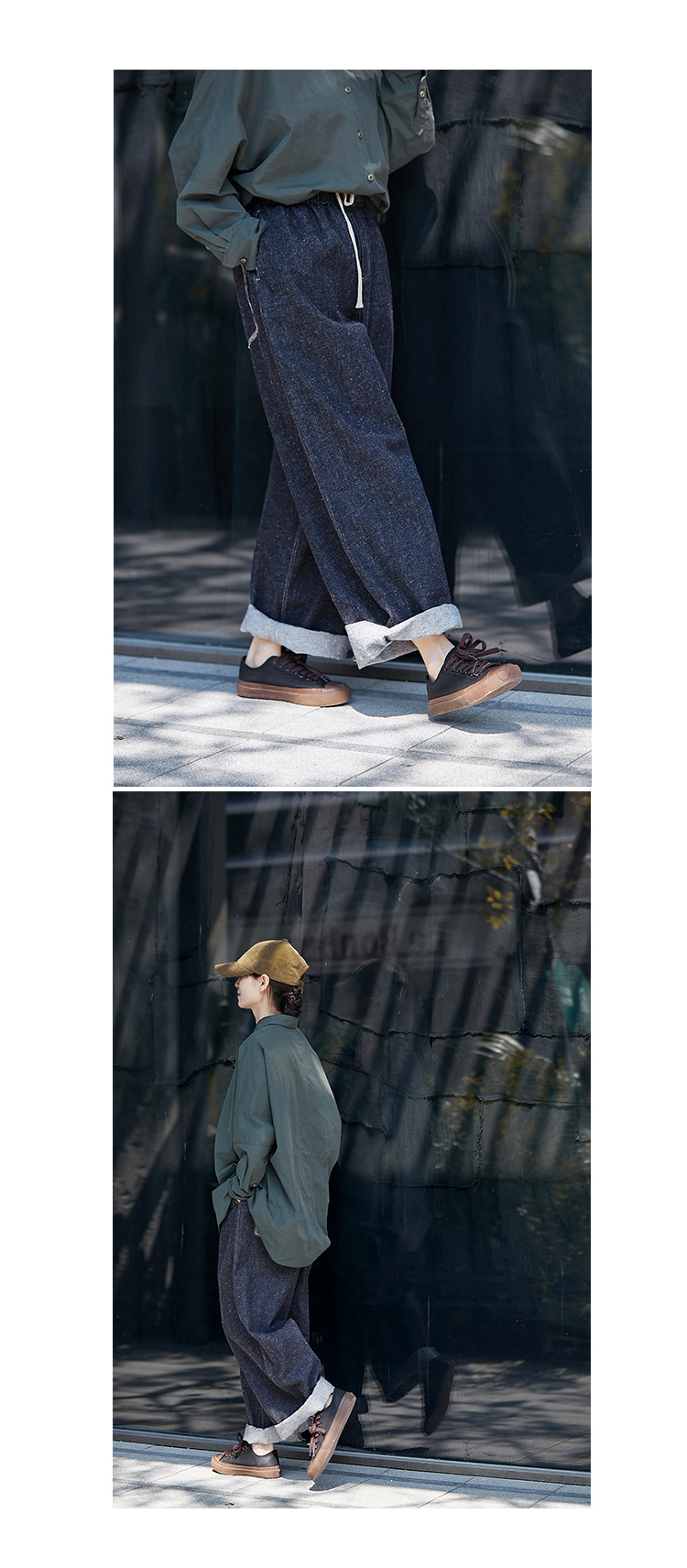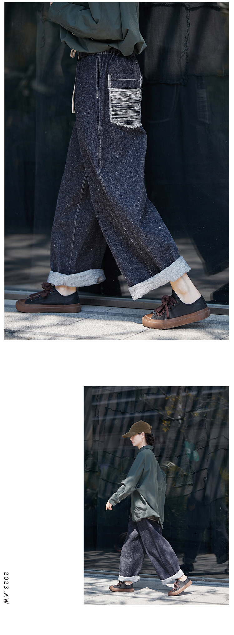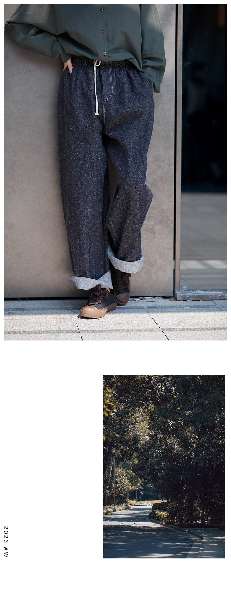 Three-season black linen cotton elastic waist classic women's casual straight-leg jeans, retro loose, autumn and winter casual