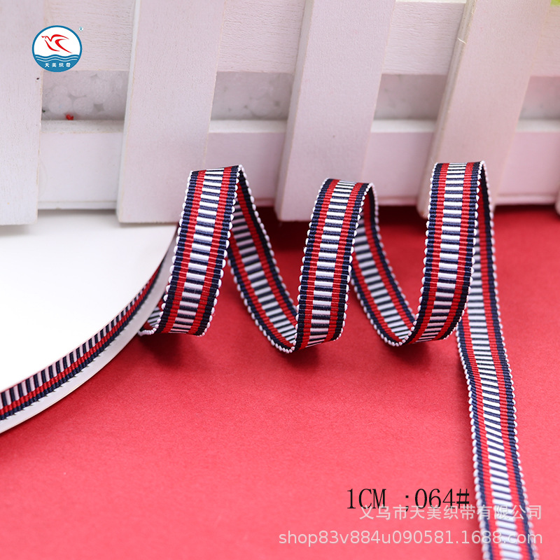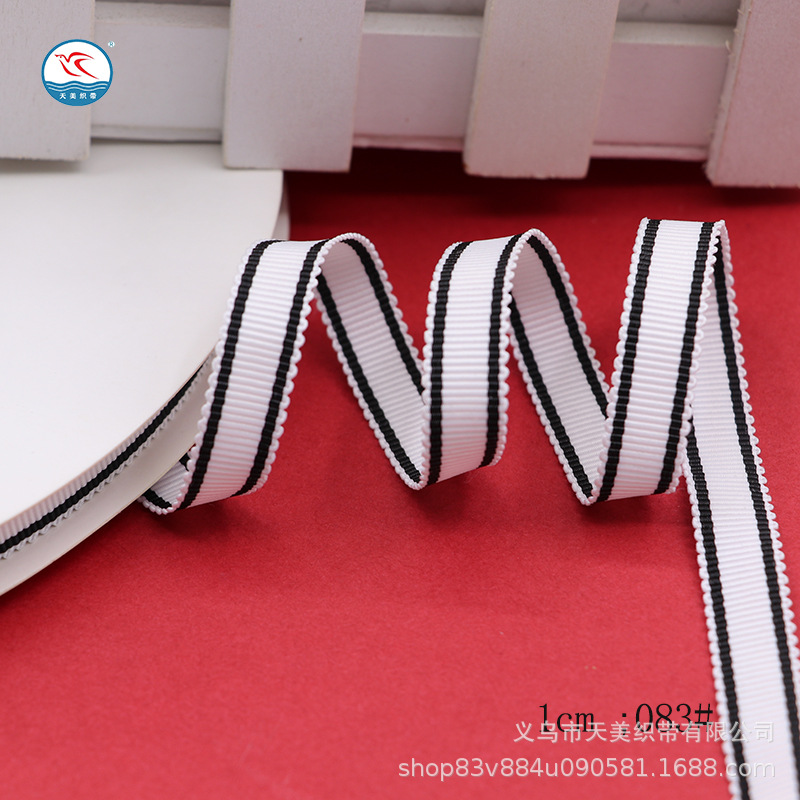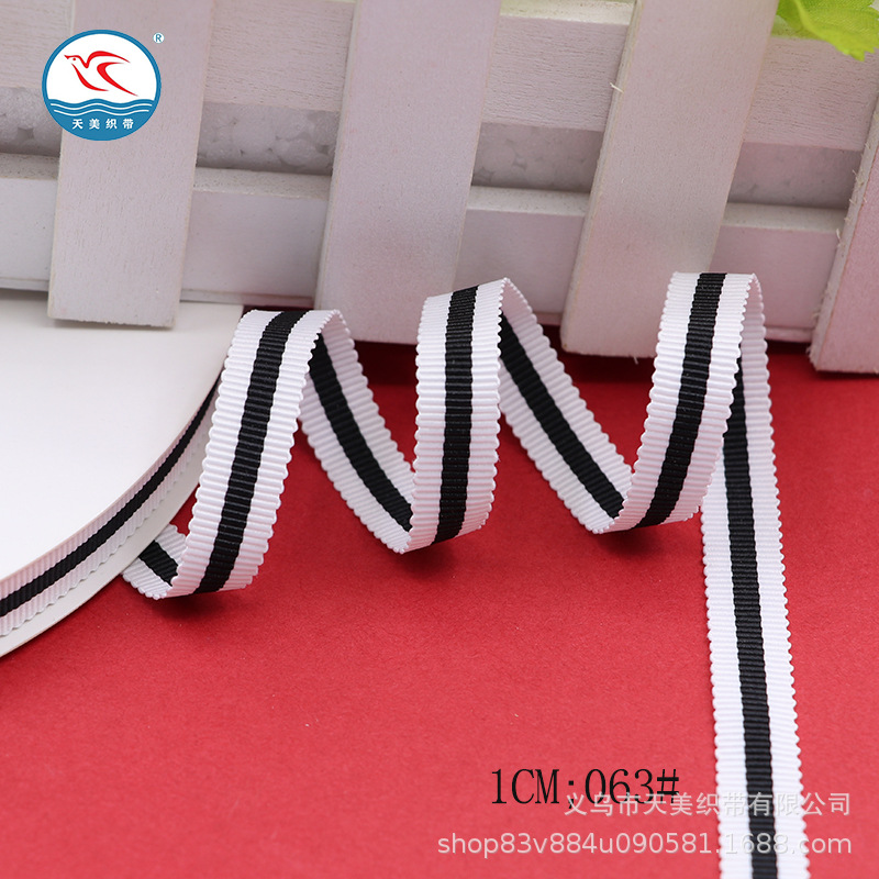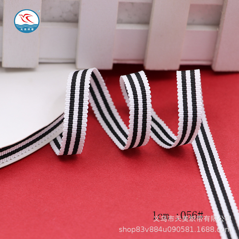 Tianmei threaded tape 1CM horizontal striped toothed edge tape 1.5CM polyester cap strap Striped colored woven tape DIY clothing accessories