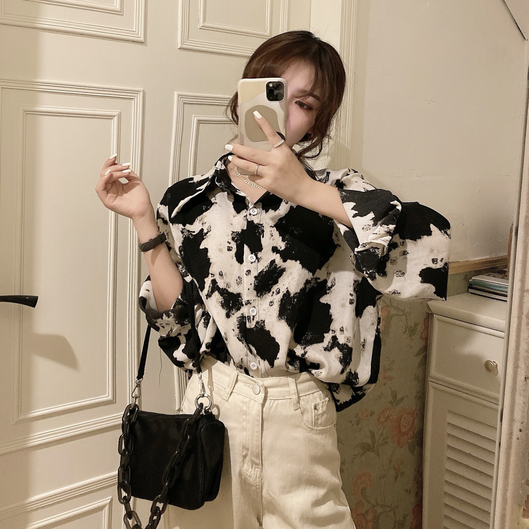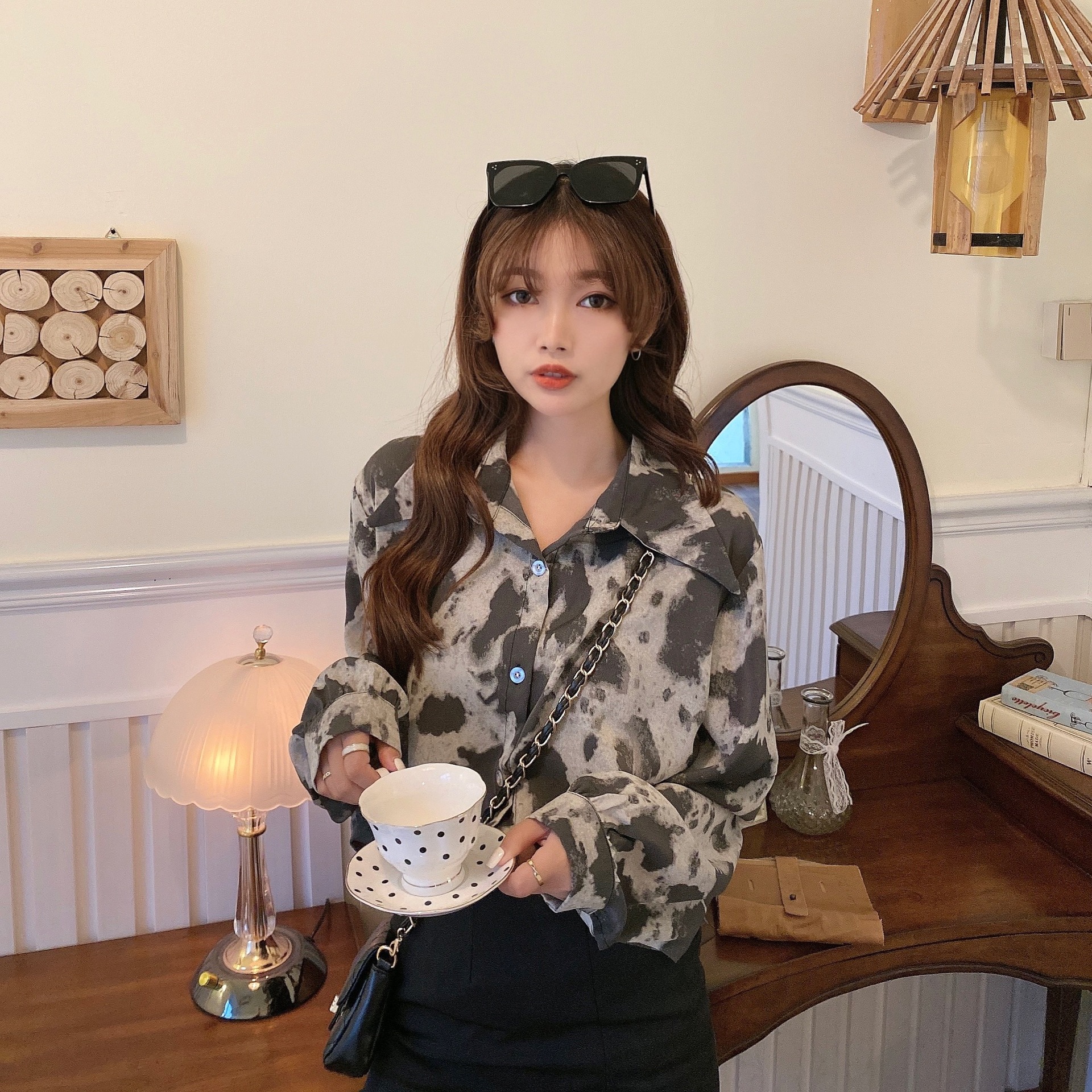 Tie-dye camouflage leopard print chiffon shirt for women, 20 new style Hong Kong-style loose and drape long-sleeved shirt