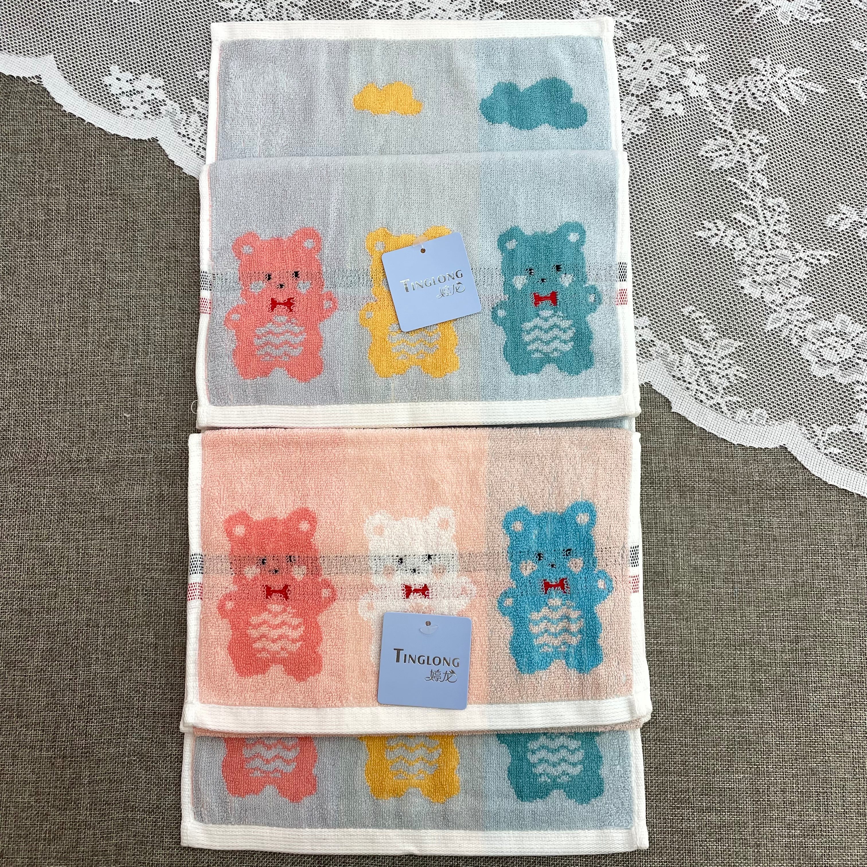 Tinglong Factory direct sales of pure cotton children's face towels with three bear patterns