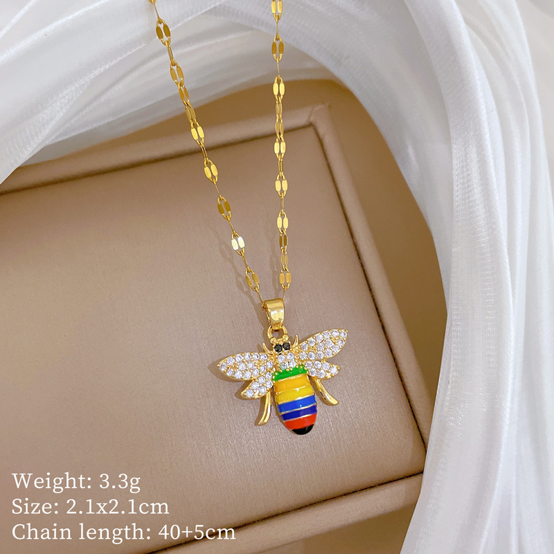 【 Titanium Steel 】 Oil-Dripping Bee Light Luxury Cross-border Banquet Wedding Necklace, versatile collarbone chain for female Internet celebrities, Titanium steel chain