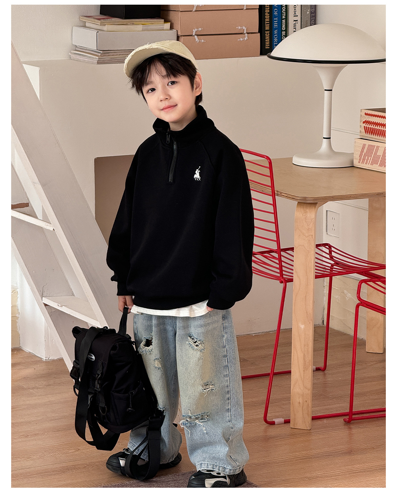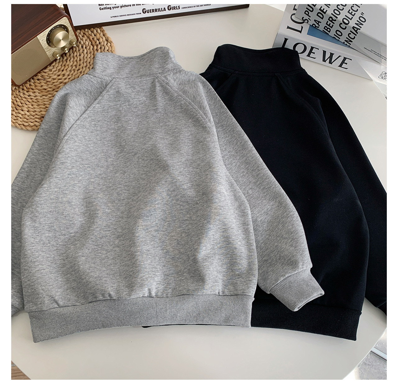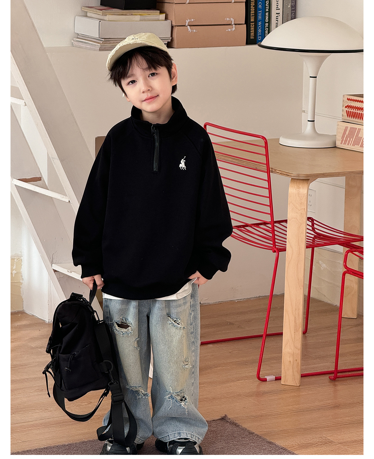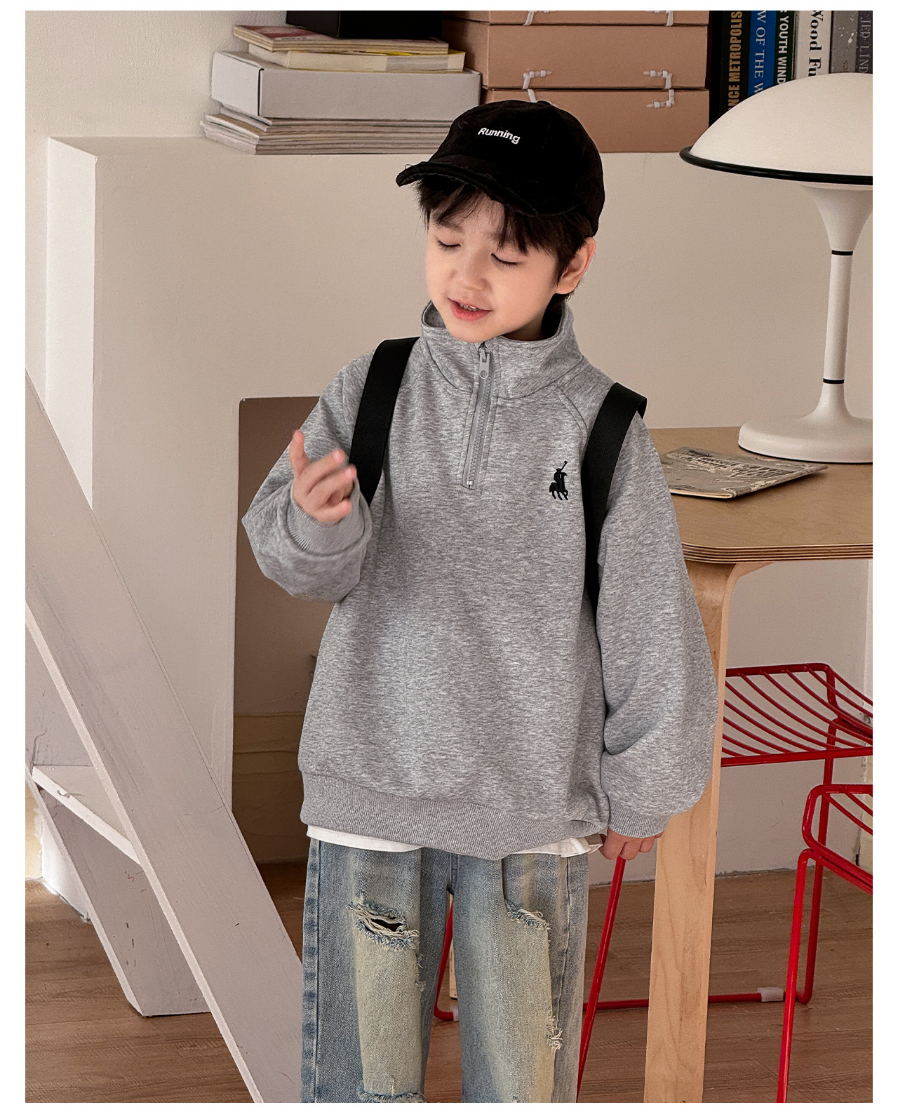 Tongku 2025 Spring Collection of Huzhou Zhili Children's Clothing: Fashionable embroidered top, stand-up collar, zipper, solid color children's hoodie