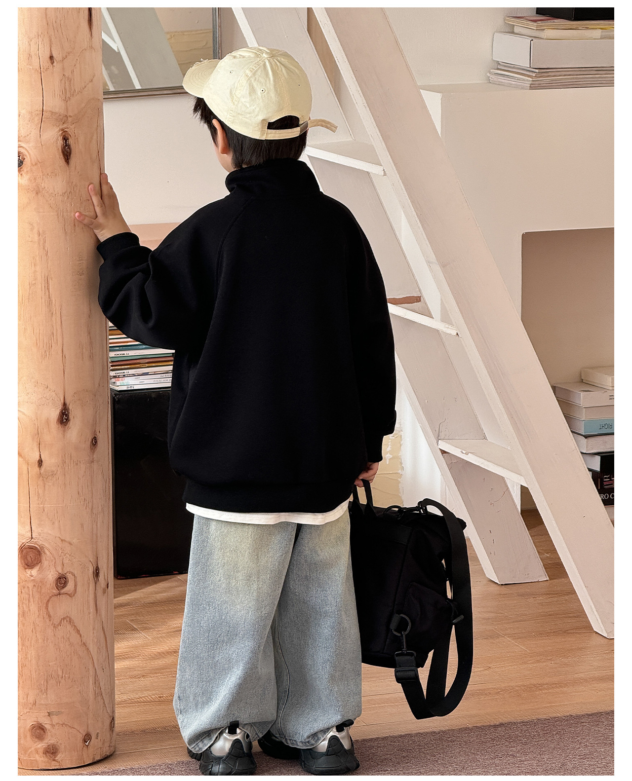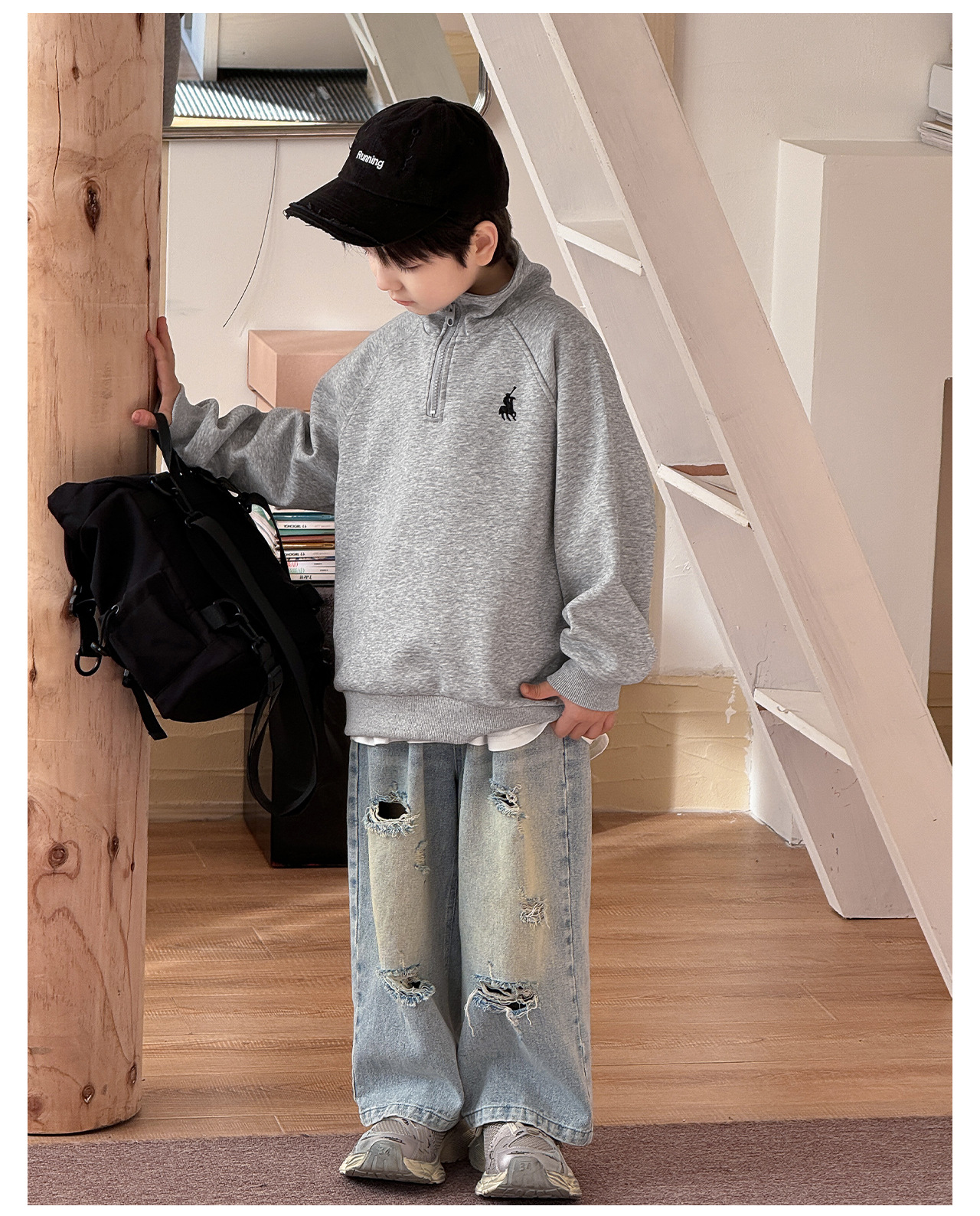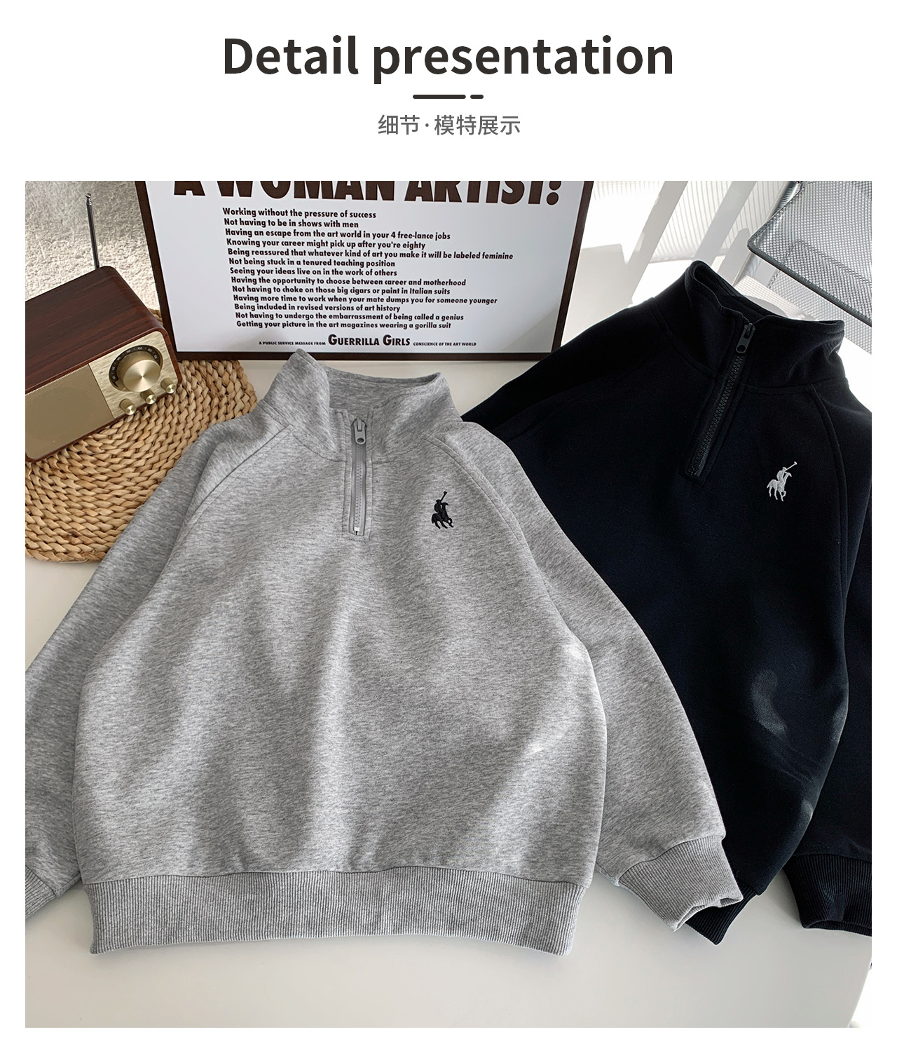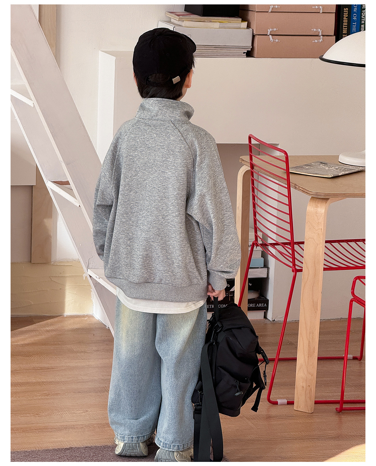 Tongku 2025 Spring Collection of Huzhou Zhili Children's Clothing: Fashionable embroidered top, stand-up collar, zipper, solid color children's hoodie