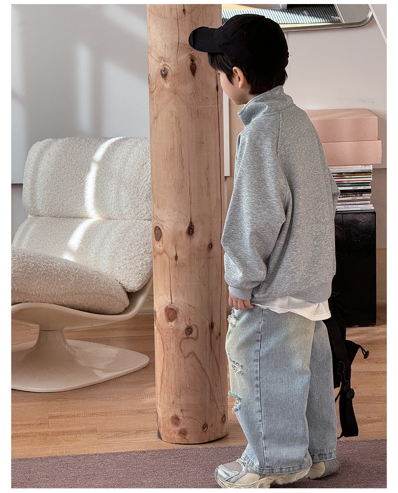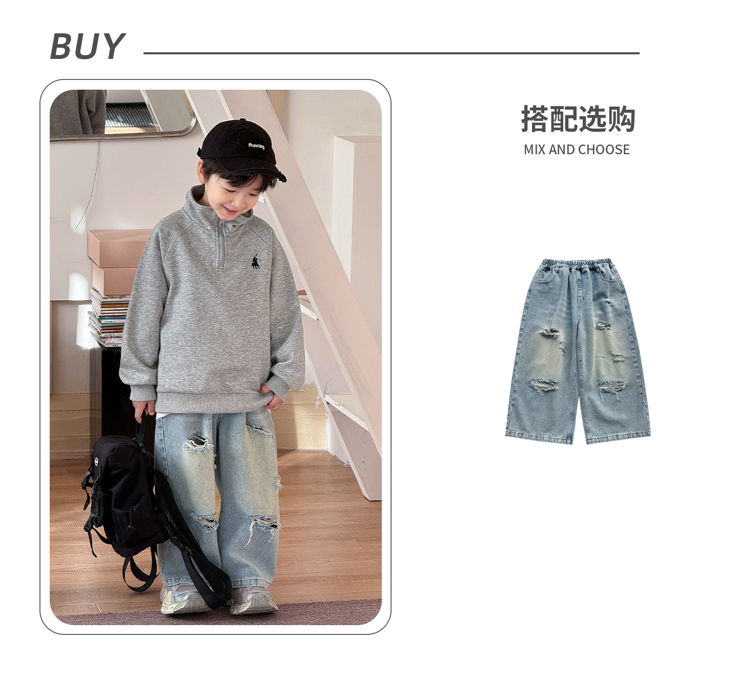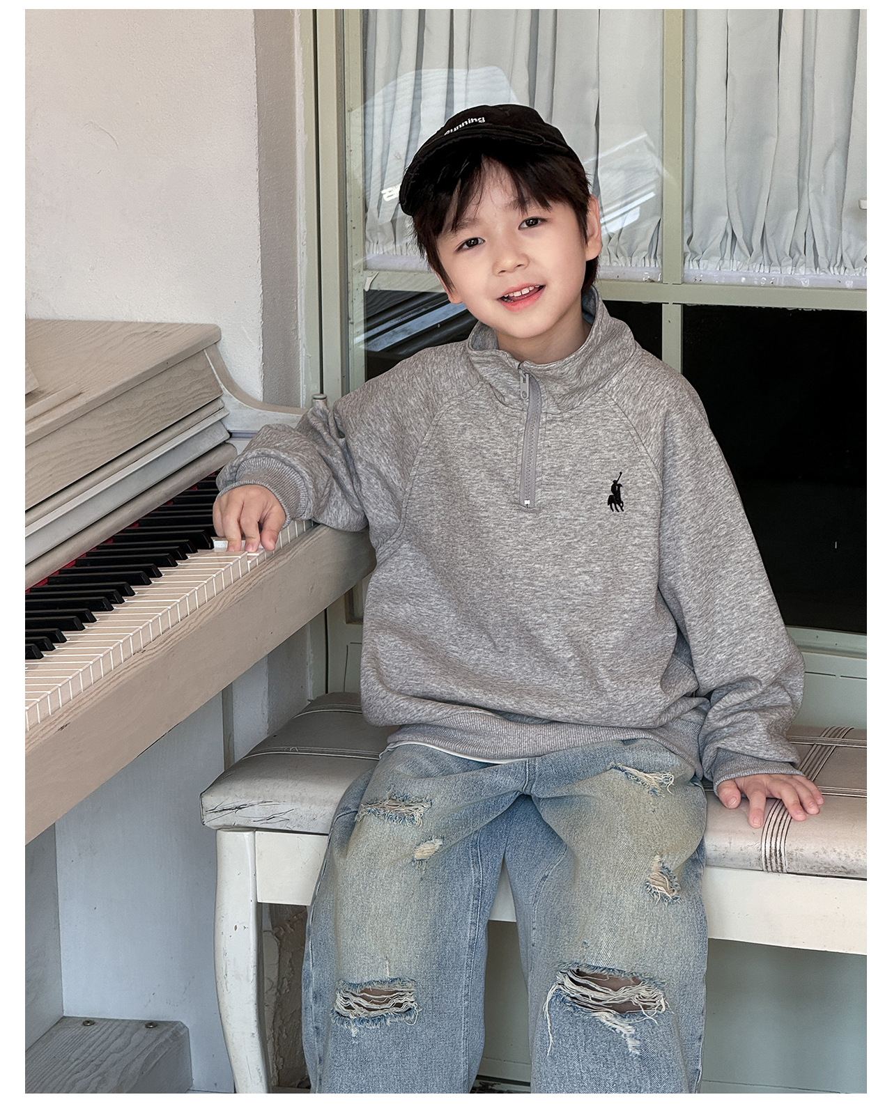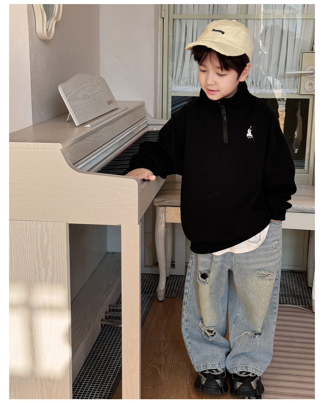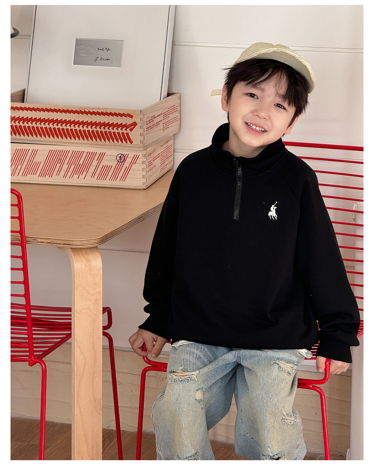 Tongku 2025 Spring Collection of Huzhou Zhili Children's Clothing: Fashionable embroidered top, stand-up collar, zipper, solid color children's hoodie