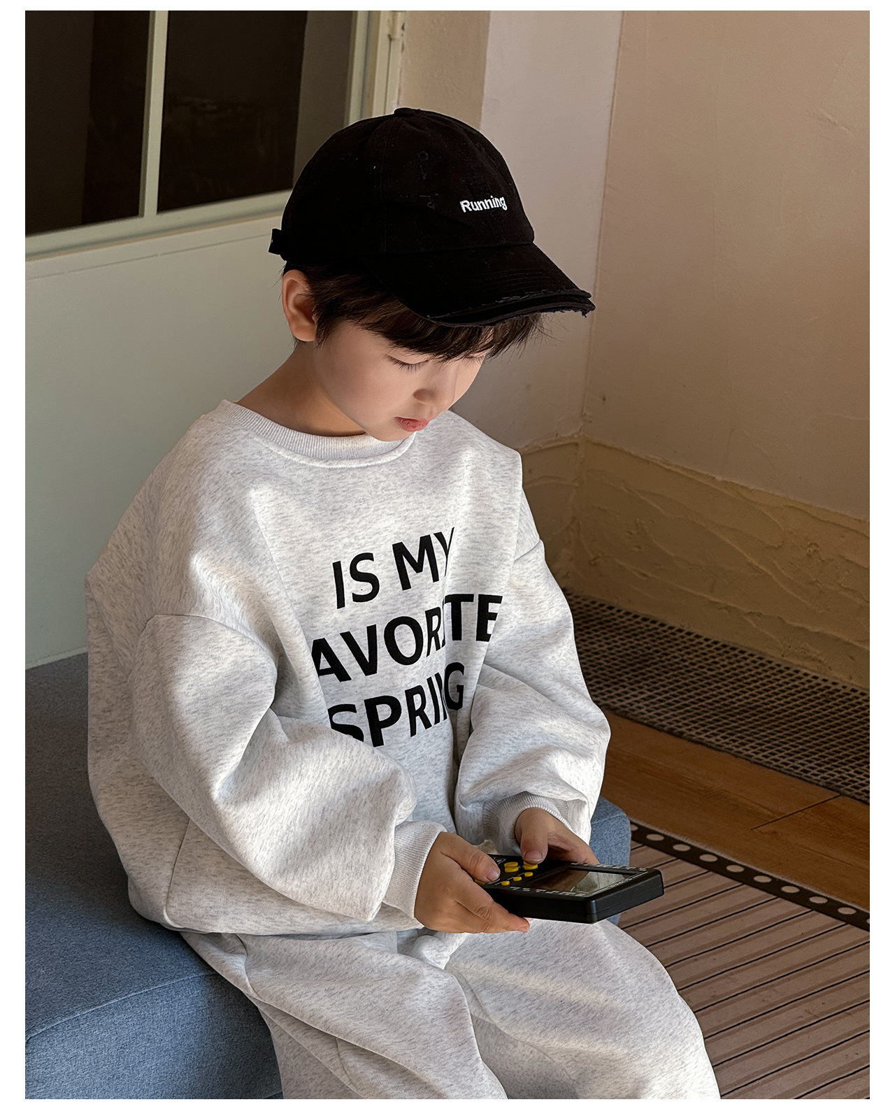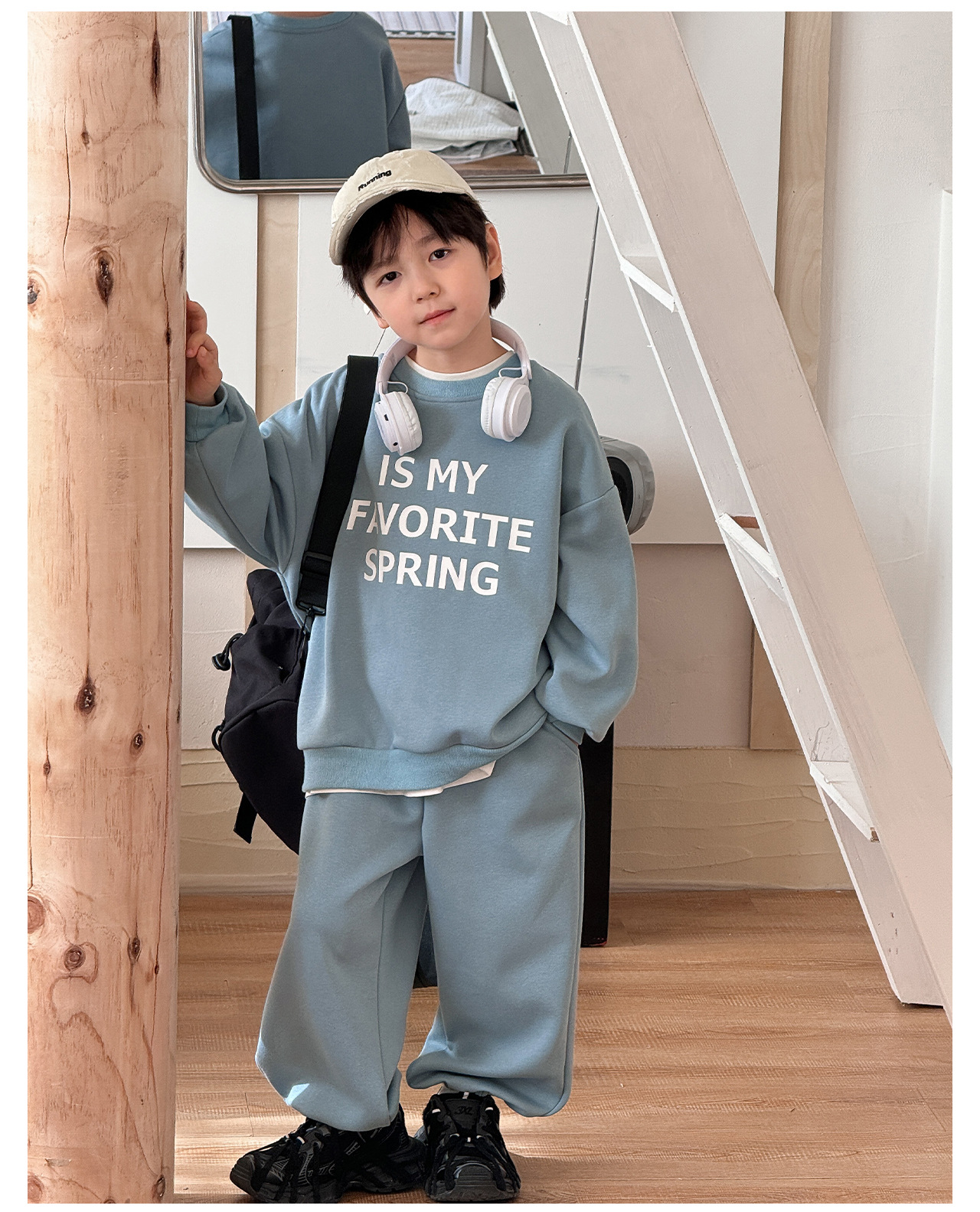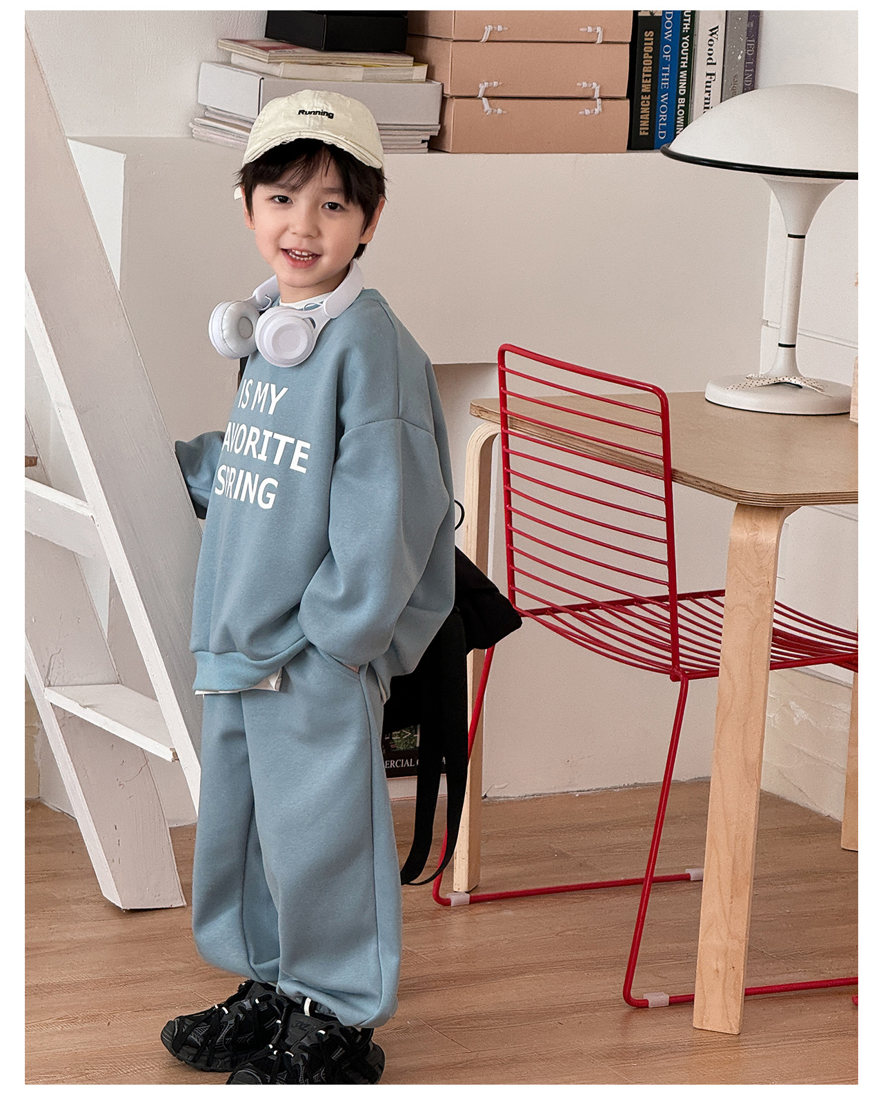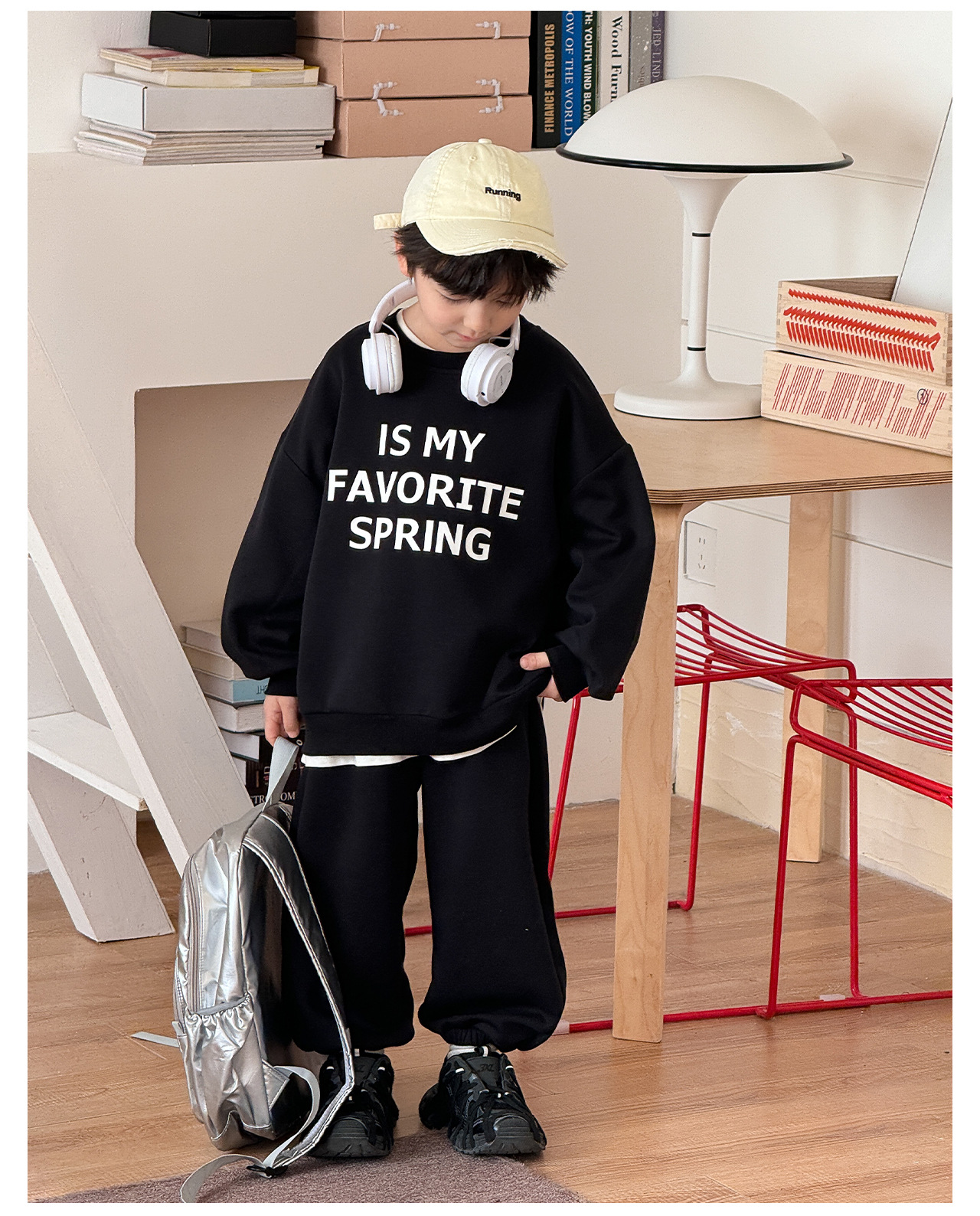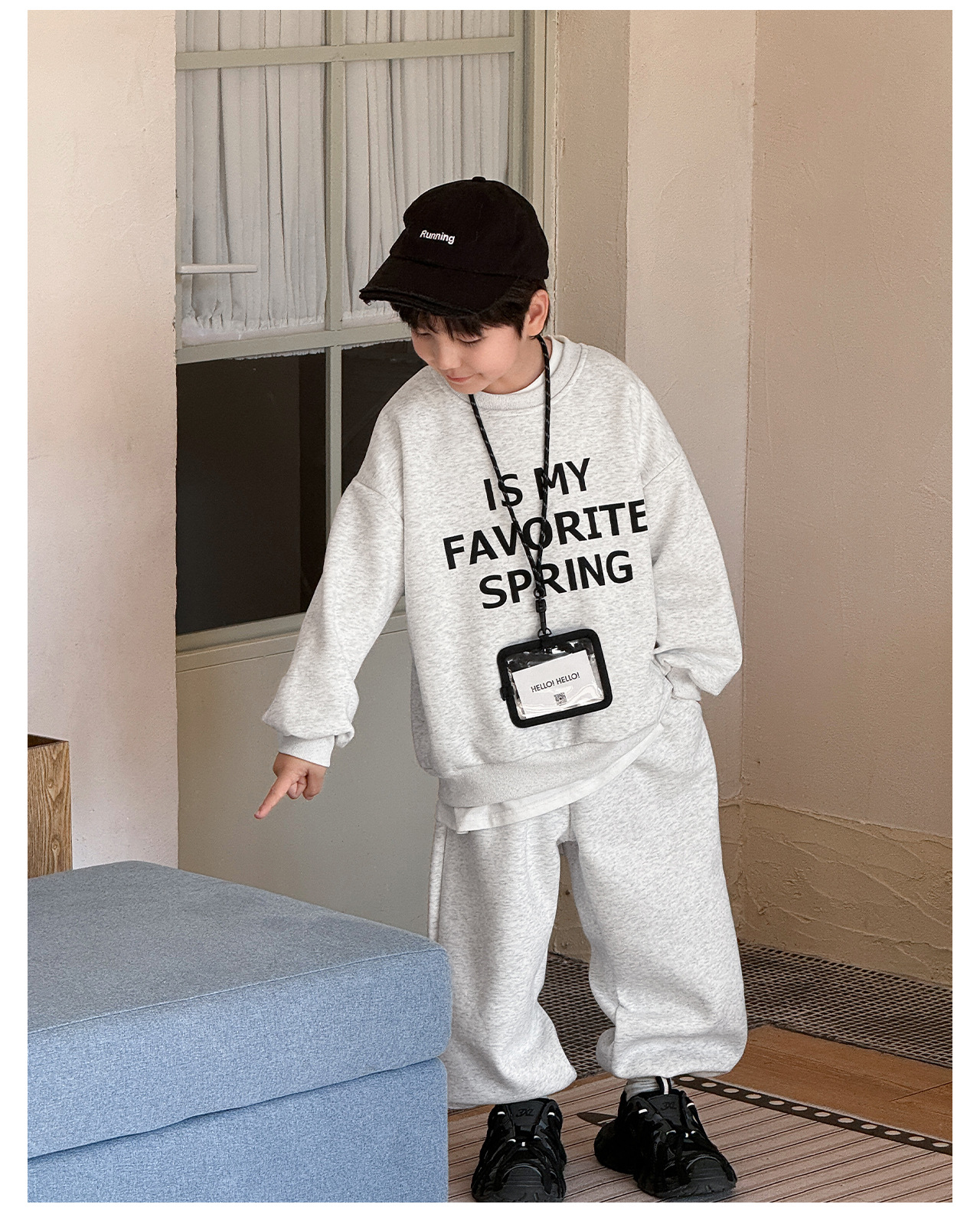 Tongku 2025 Spring Edition for Boys - Huzhou Zhili Children's Clothing - Korean-style Children's Letter Printed Round-neck Hoodie Set