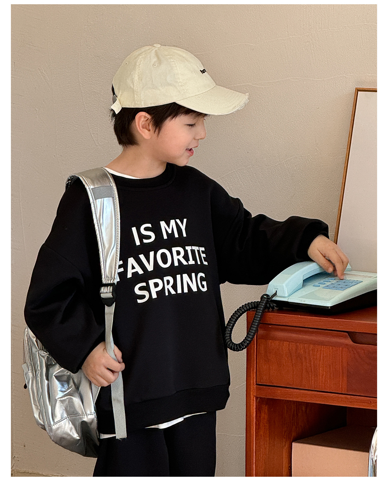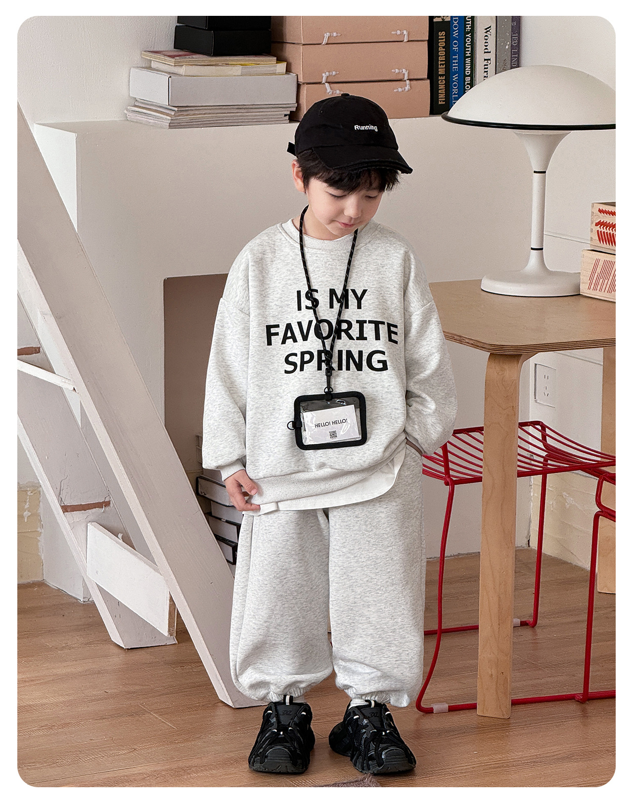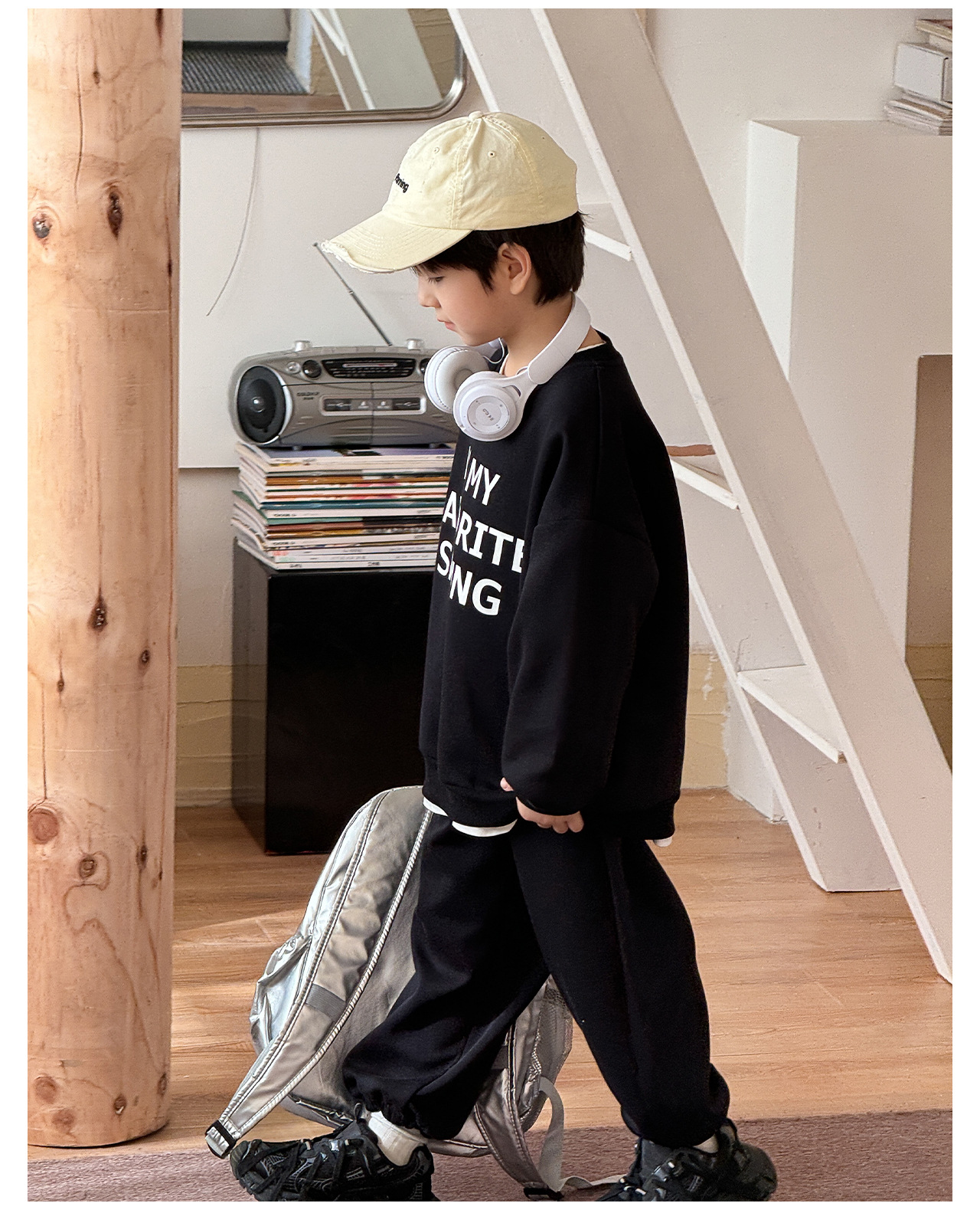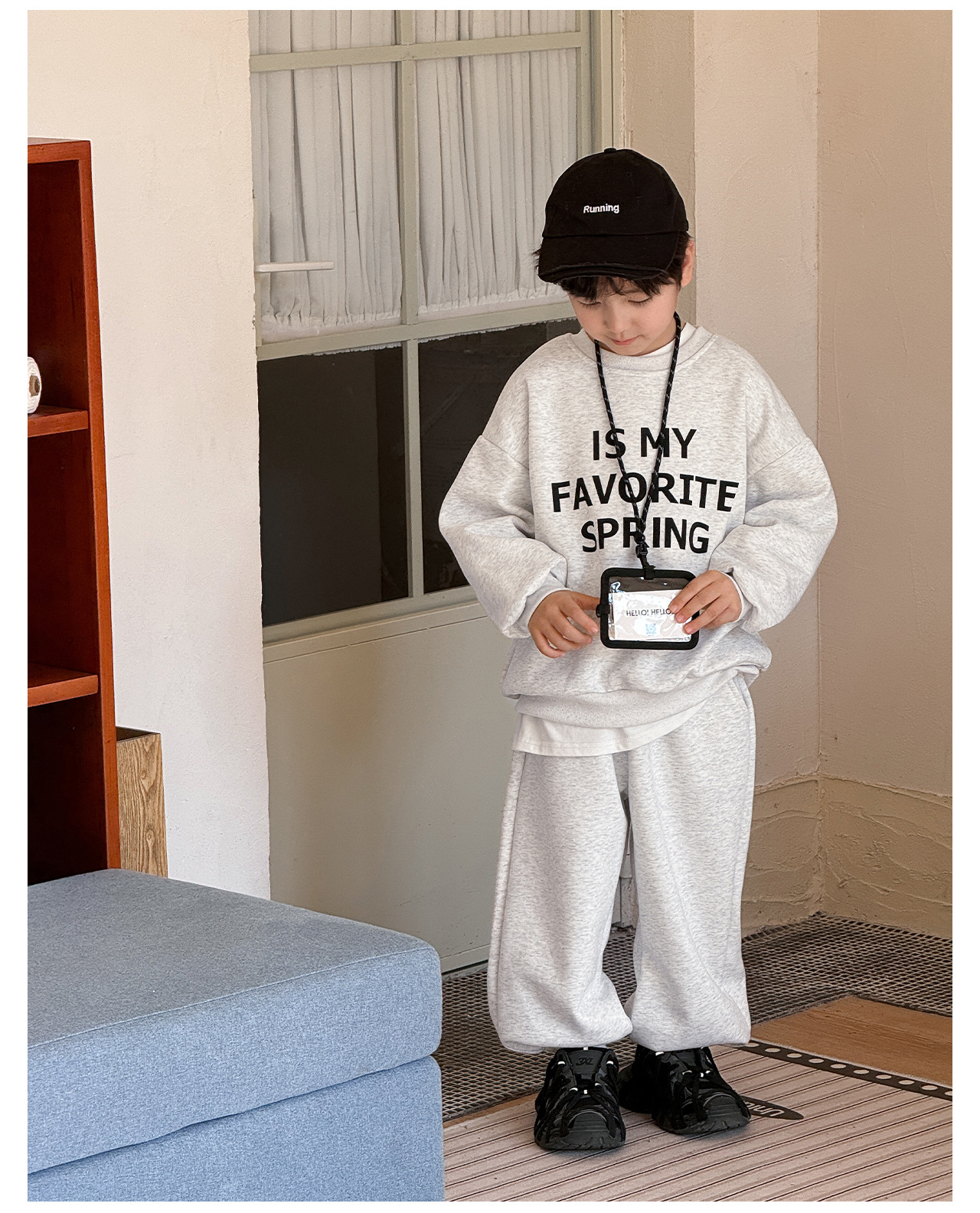 Tongku 2025 Spring Edition for Boys - Huzhou Zhili Children's Clothing - Korean-style Children's Letter Printed Round-neck Hoodie Set