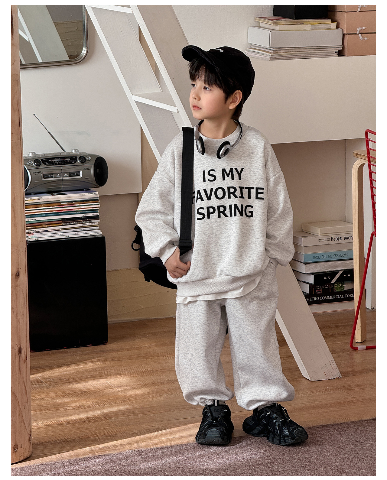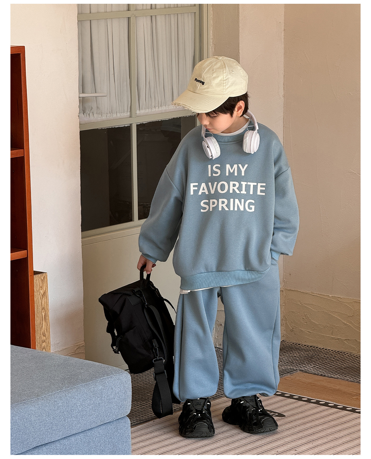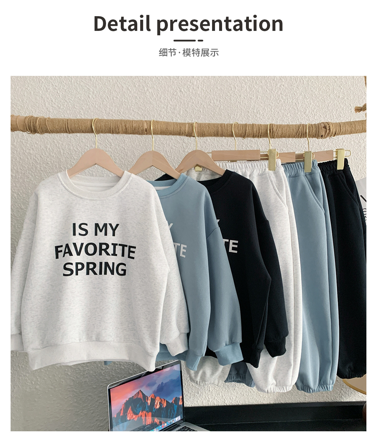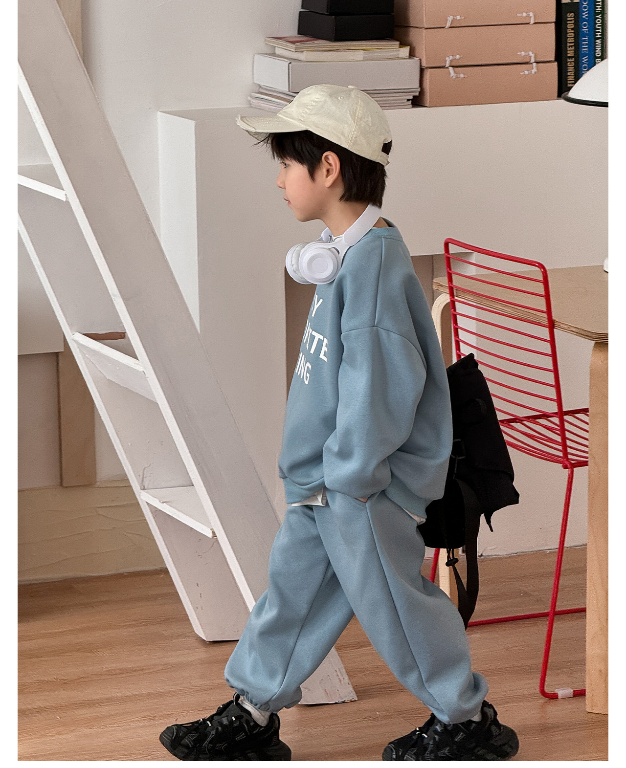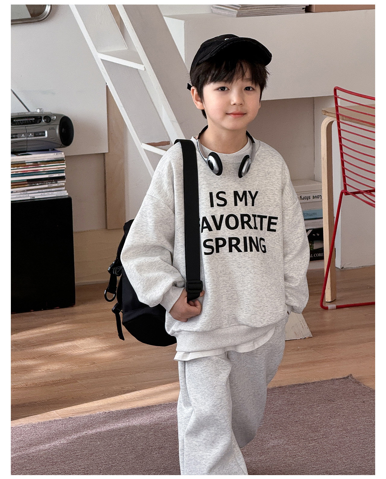 Tongku 2025 Spring Edition for Boys - Huzhou Zhili Children's Clothing - Korean-style Children's Letter Printed Round-neck Hoodie Set