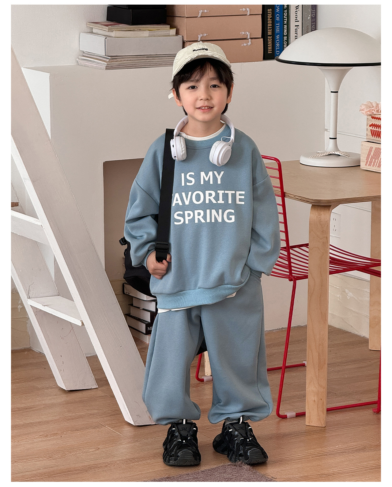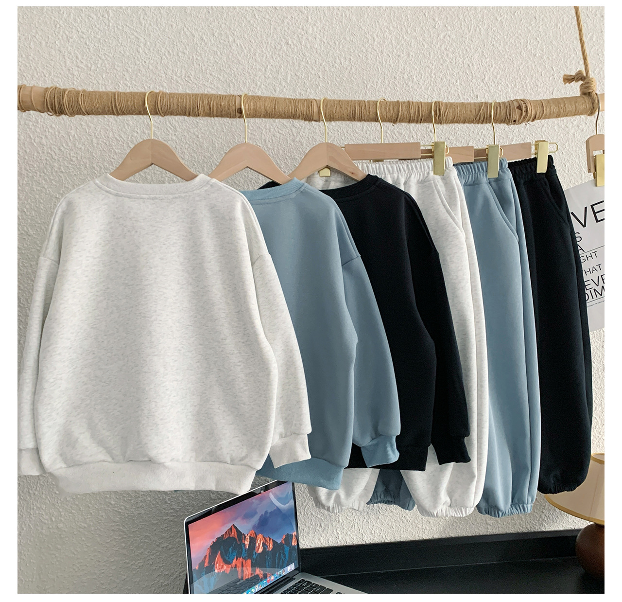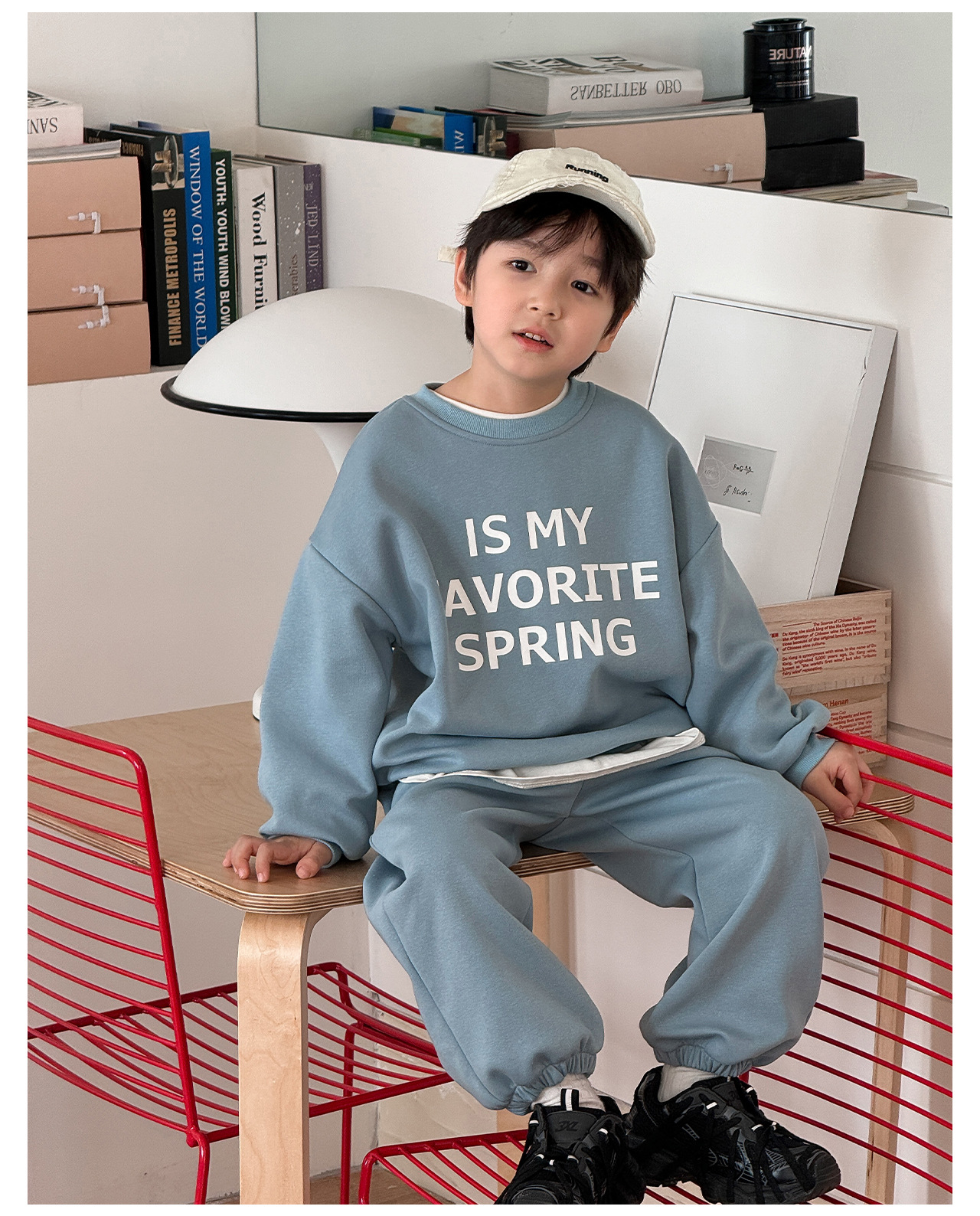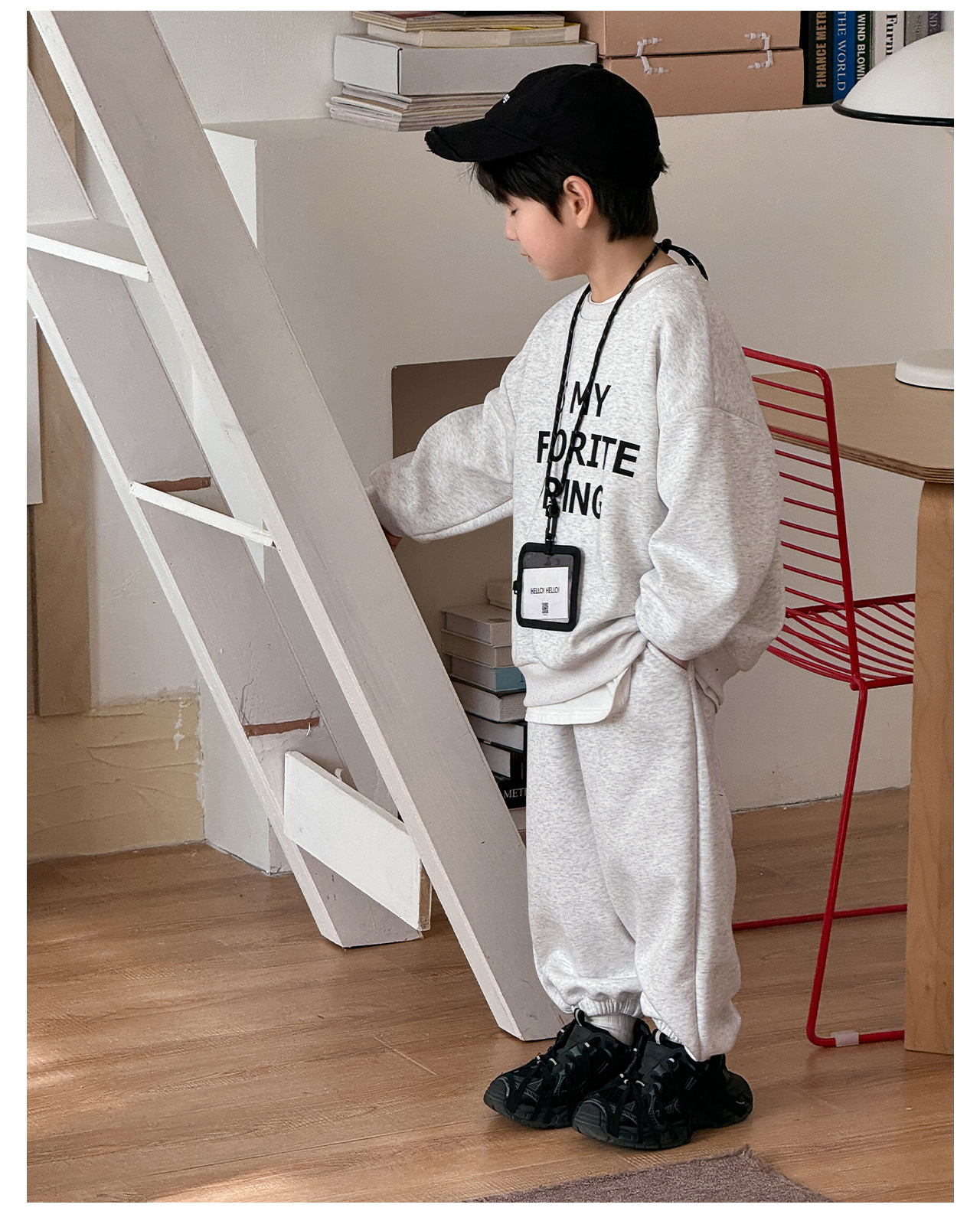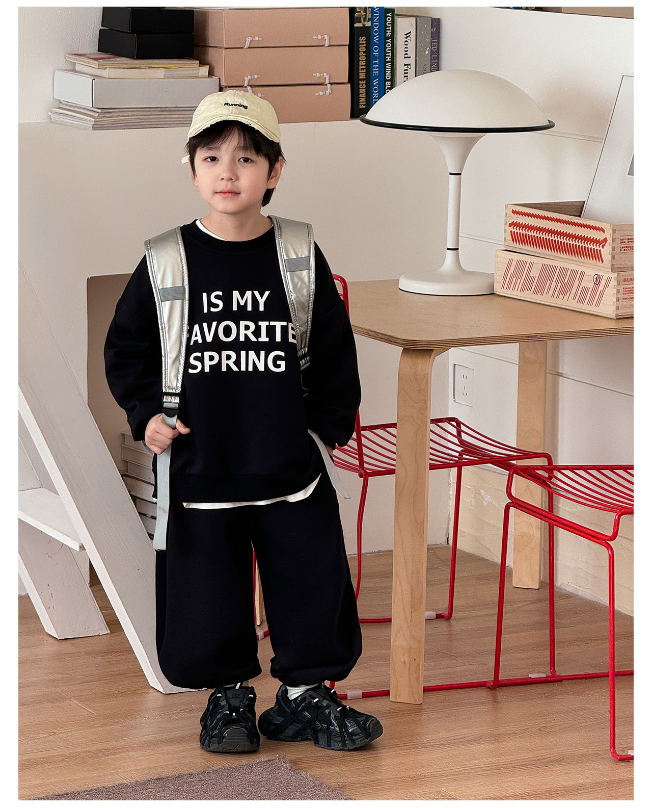 Tongku 2025 Spring Edition for Boys - Huzhou Zhili Children's Clothing - Korean-style Children's Letter Printed Round-neck Hoodie Set
