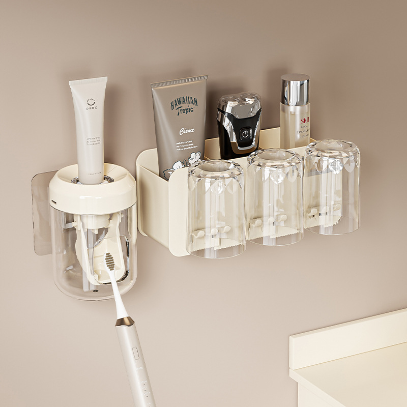 Toothbrush rack, storage rack, bathroom hanging type toothpaste rack, mouthwash cup, non-perforated toothbrush holder, wall-mounted brushing type