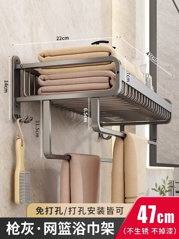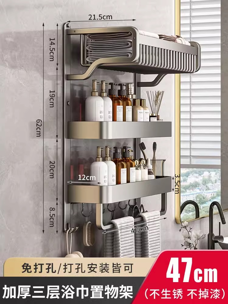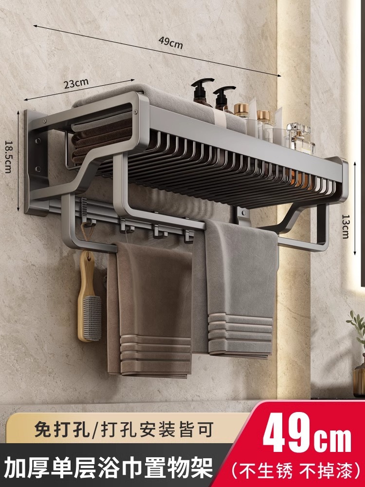 Thickened single-layer bath towel rack with double rods, 49cm