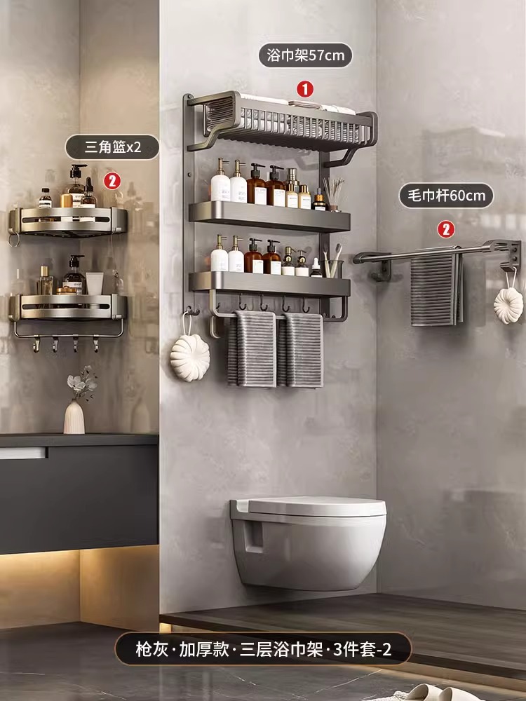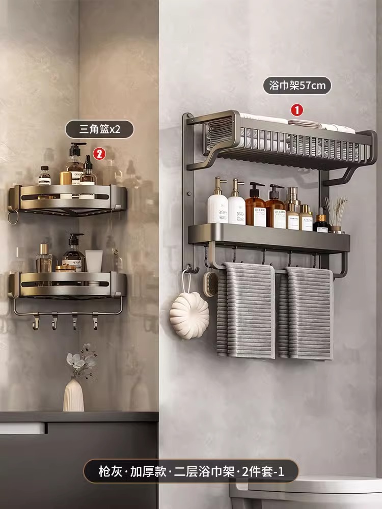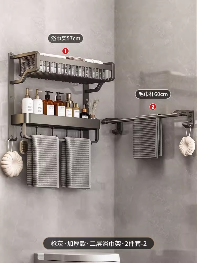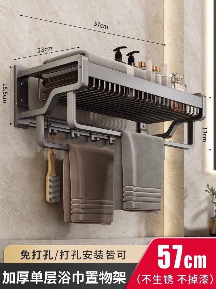 Thickened single-layer bath towel rack with double rods, 57cm