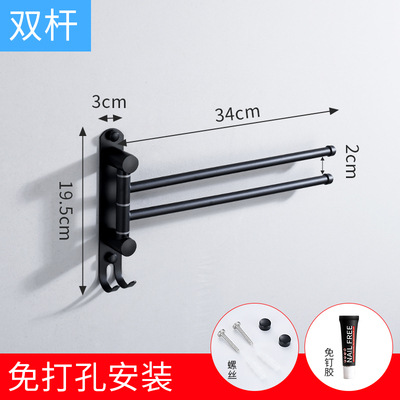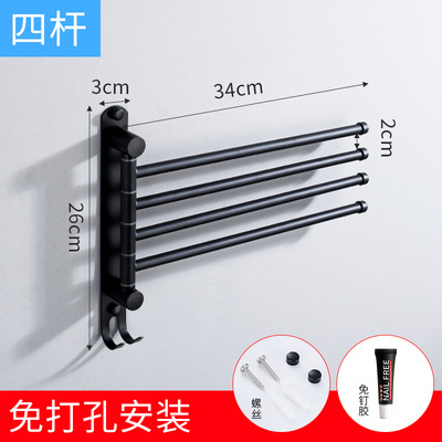 Towel rack without drilling, 304 stainless steel, bathroom storage rack, bathroom rotating, folding and movable towel pole, multi-pole