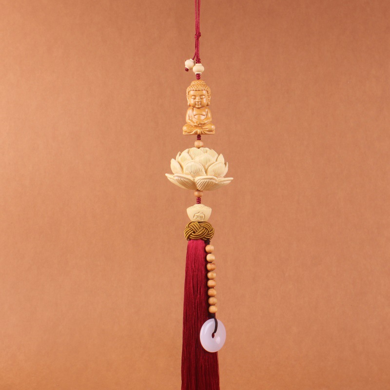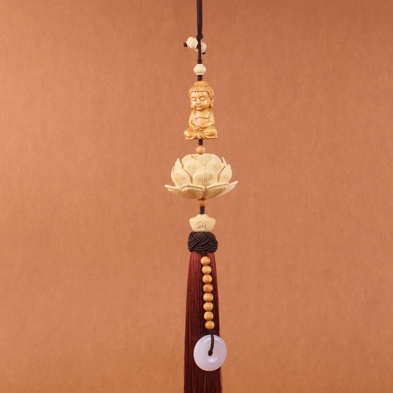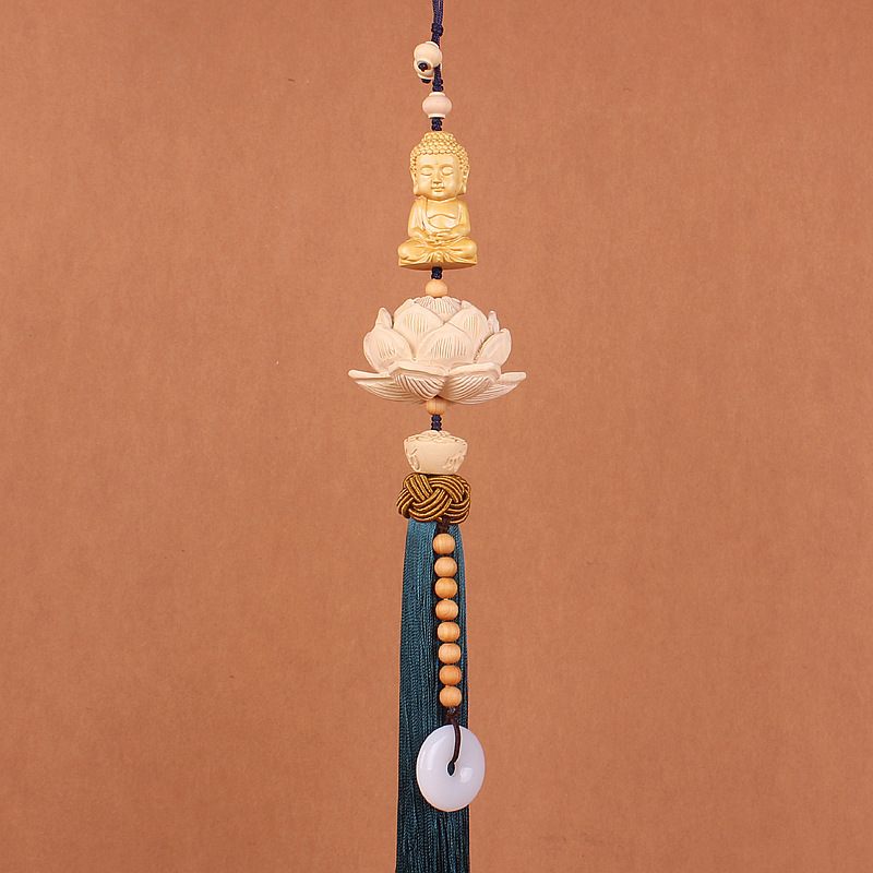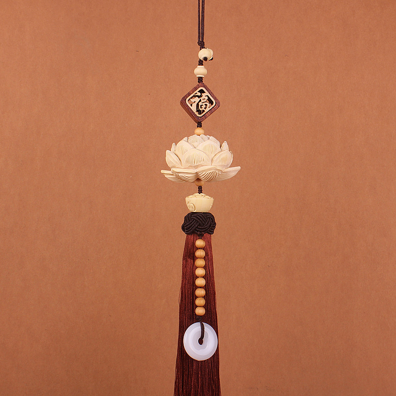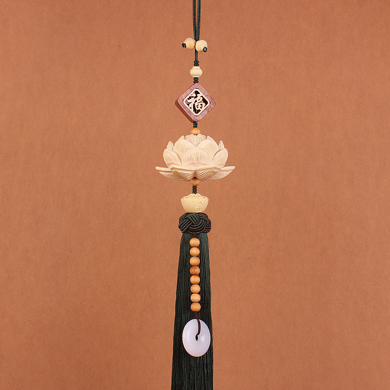 Traditional Chinese-style boxwood lotus interior accessories, car rearview mirror pendants, car decoration items, pendants, Chinese trend