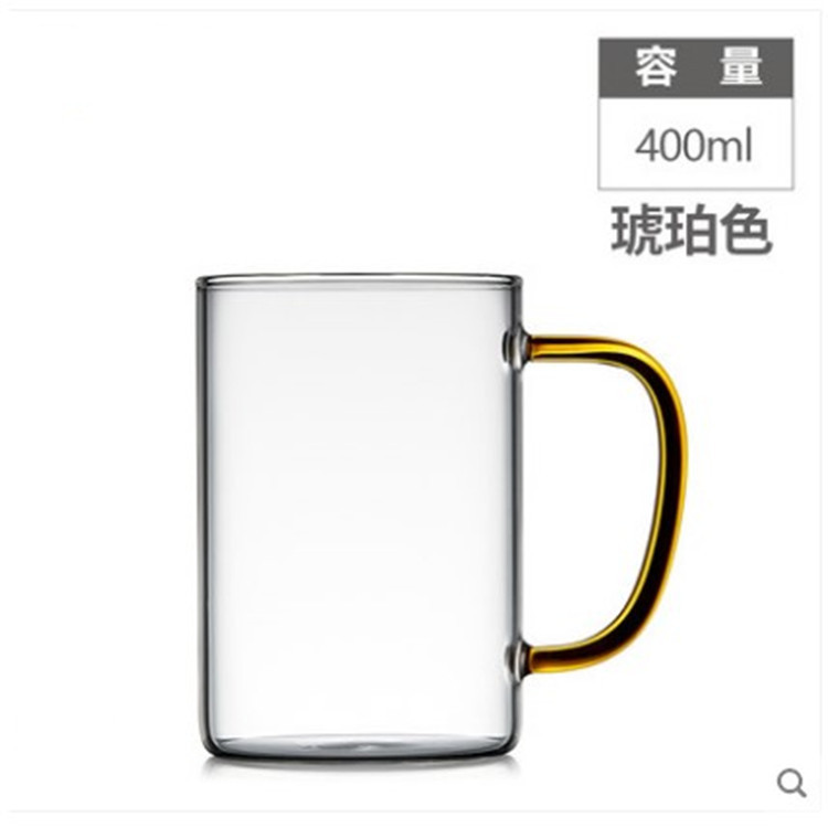 Transparent high borosilicate single-layer handle cup, household heat-resistant glass cup, tea brewing cup, multi-color handle cup, customizable logo