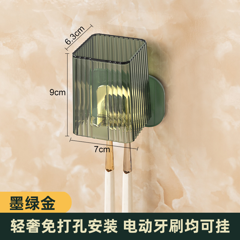 Transparent, hole-free, light luxury toothbrush holder, bathroom toiletry set, wall-mounted toothbrush rack, transparent toiletry cup