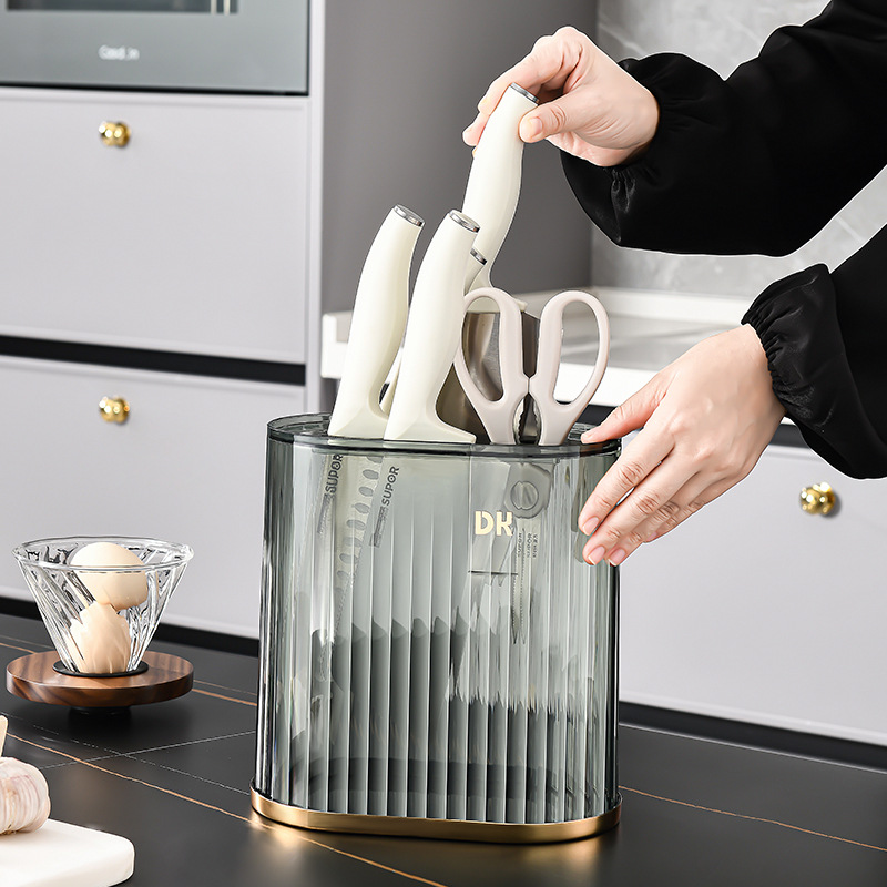 Transparent light luxury knife rack, household countertop, knife storage rack, kitchent-specific integrated draining countertop, new type of storage