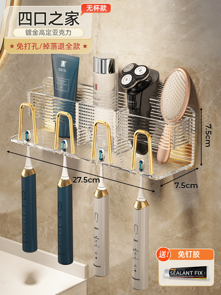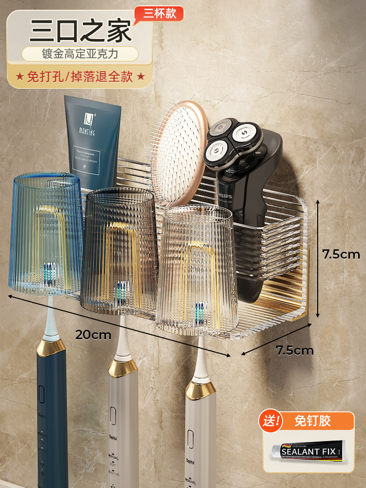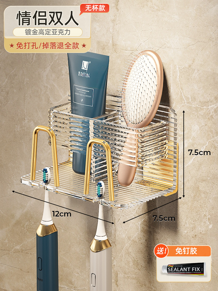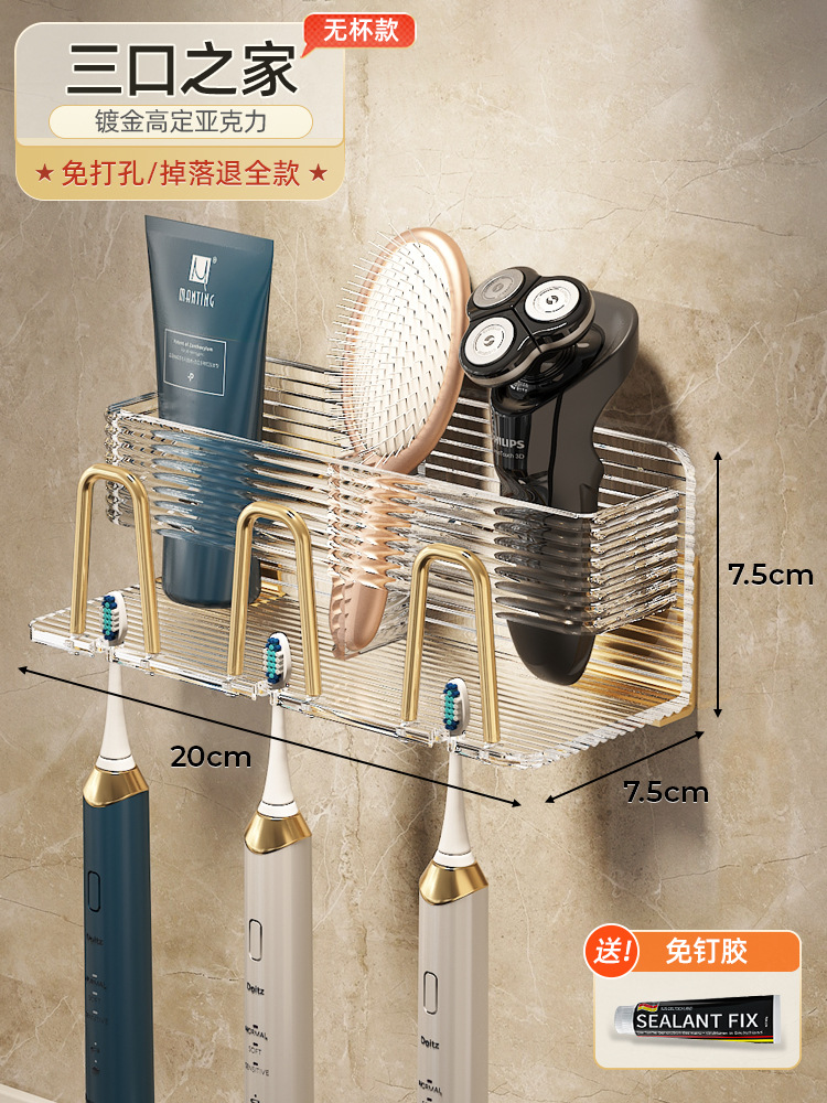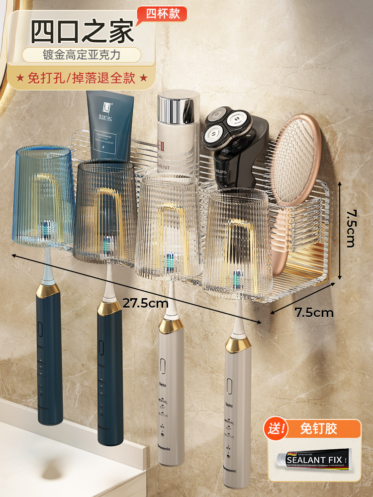 Transparent light luxury toothbrush rack, non-perforated acrylic bathroom mouthwash cup and tooth cup, wall-mounted storage box, electric