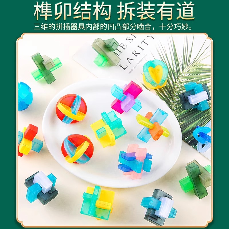 Transparent Lu Ban Lock, Intelligence ring Solving, mortise and tenon building blocks, Kongming lock unlocking, educational toys, assembly and disassembly Rubik's Cube toys