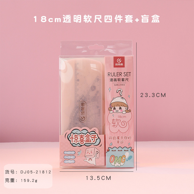 18cm soft sleeve ruler four-piece set + blind box - pink 21812