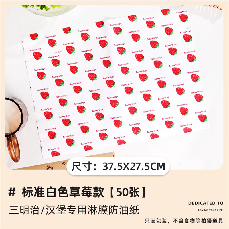 100 pieces of [White Strawberry] 28*38cm sandwich wrapping paper 10