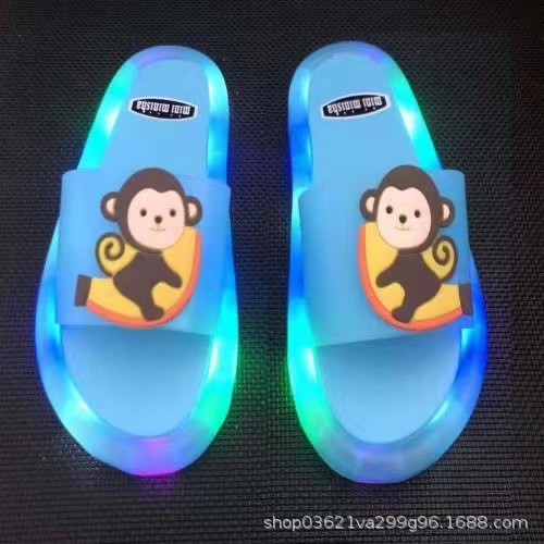Trendy and fashionable glowing children's slippers, strawberry crystal shoes, shining lights, best friend girls' shining flip-flops